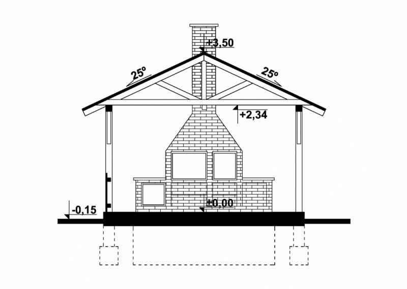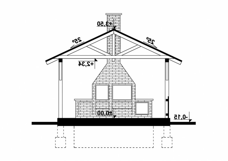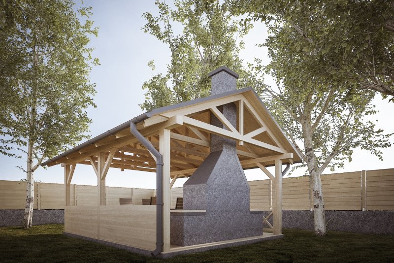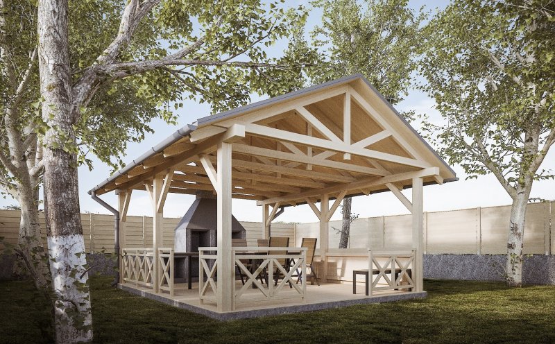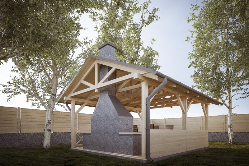 Projekt altany ogrodowej z grillem. Do projektu dołączone jest zestawienie: podstawowych materiałów konstrukcyjnych i więźby dachowej, jak równieżbezpłatna zgoda na dokonanie zmian.