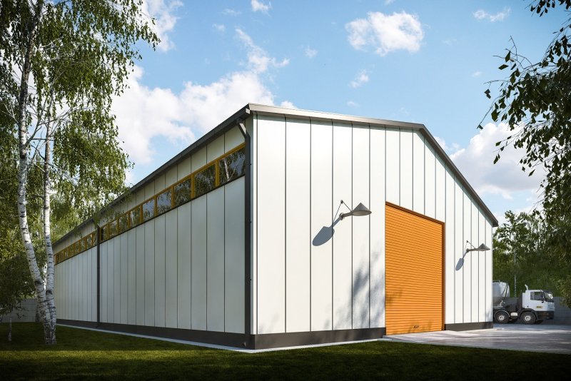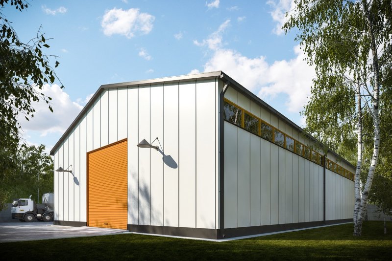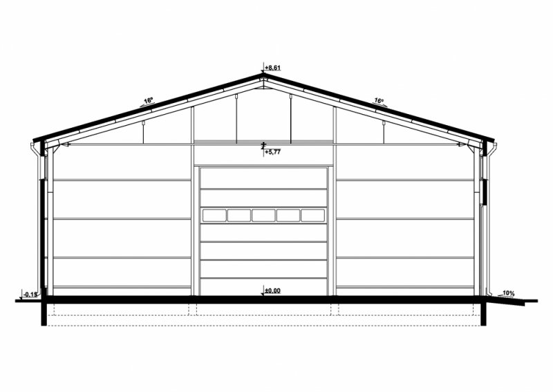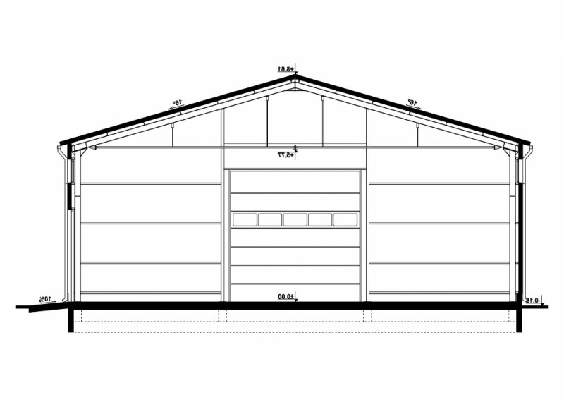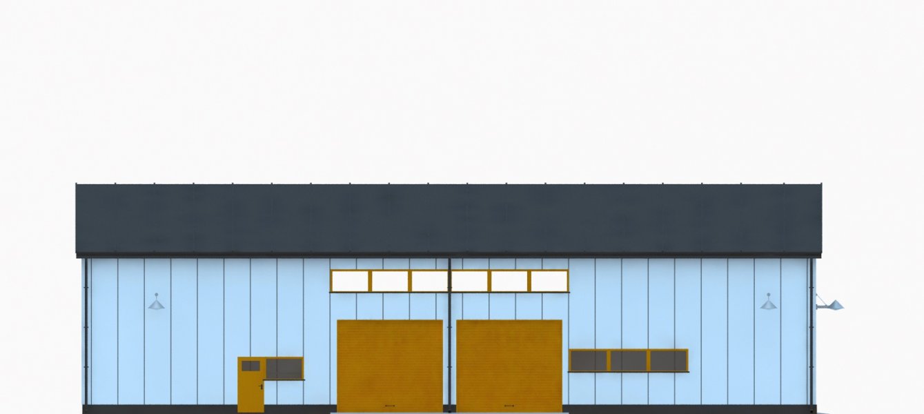 Budynek konstrukcji stalowej. Ściany z płyty warstwowej. Bramy o wymiarach 4,00x3,50m i 5,00x5,00m. Więźba dachowa dwuspadowa, stalowa, pokryta płytą warstwową.