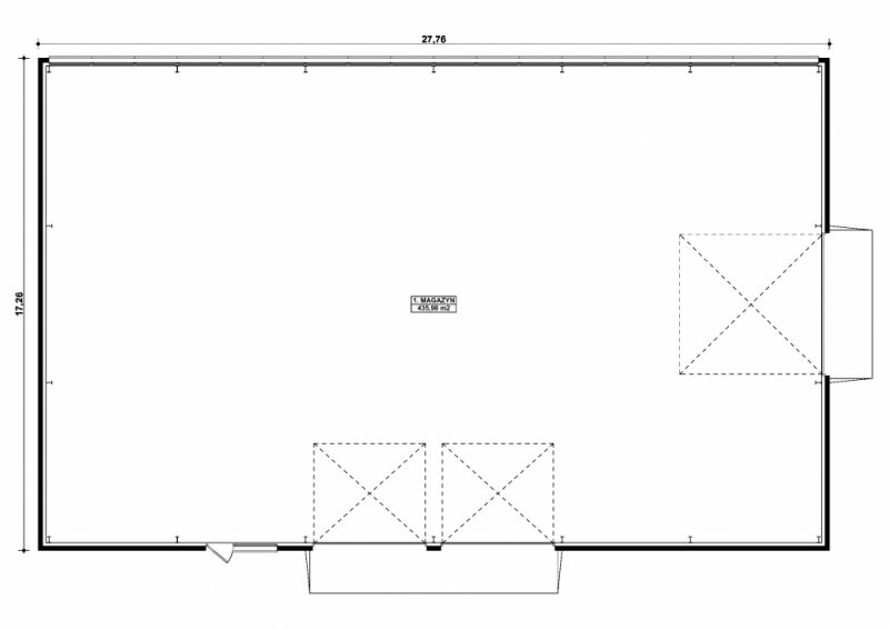 Projekt budynku magazynowego, parterowego, niepodpiwniczonego. Do projektu dołączone jest zestawienie: stali, stolarki drzwiowej i okiennej, jak również bezpłatna zgoda na dokonanie zmian.