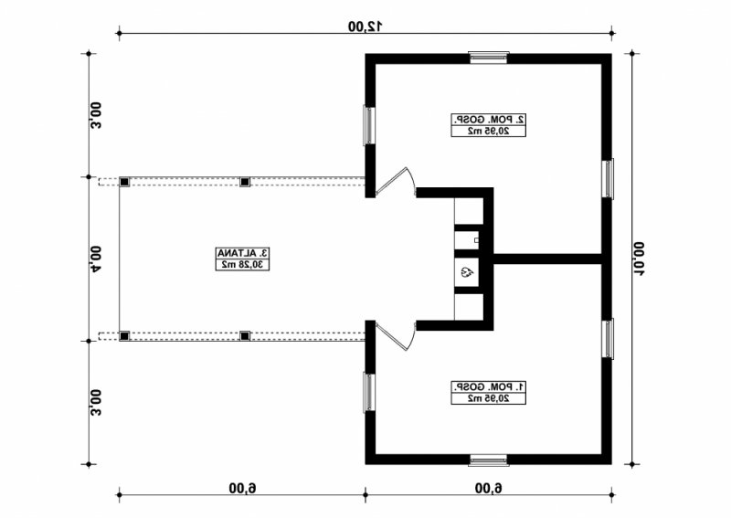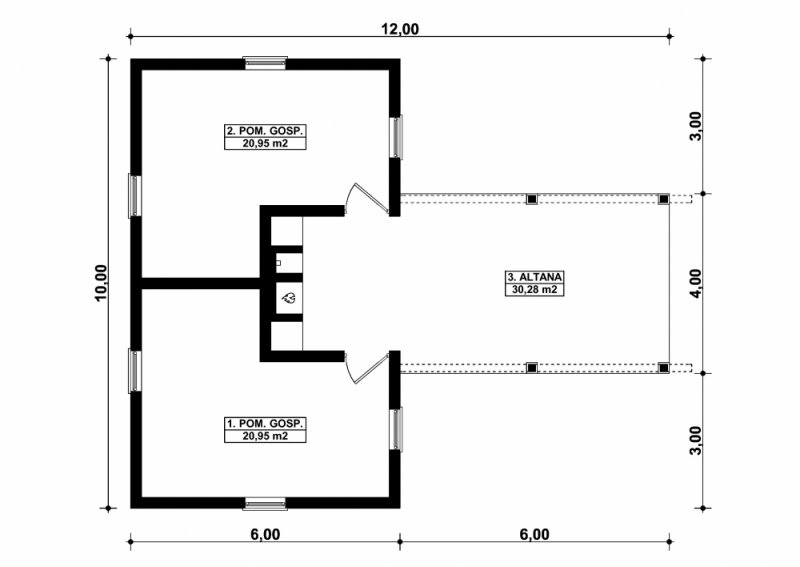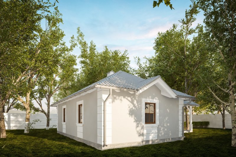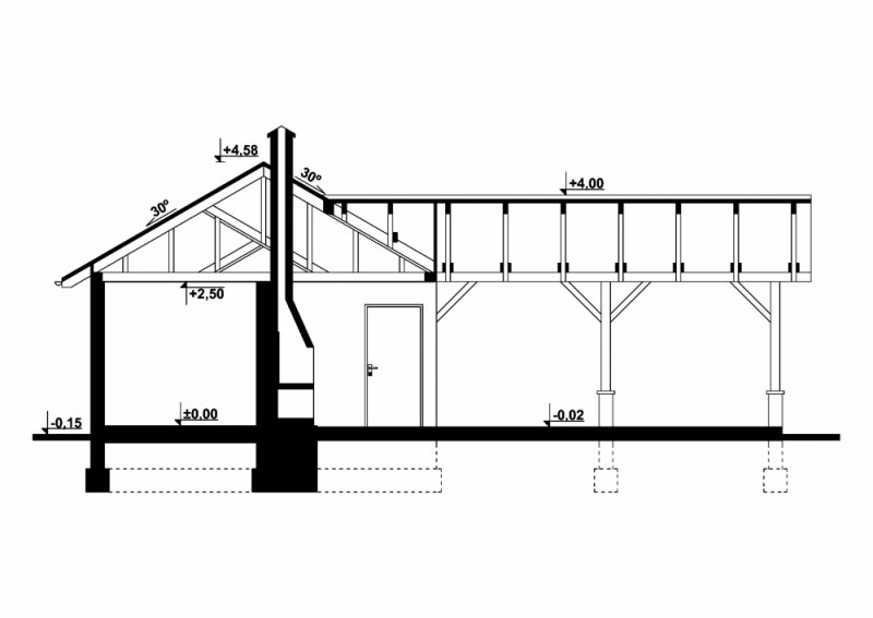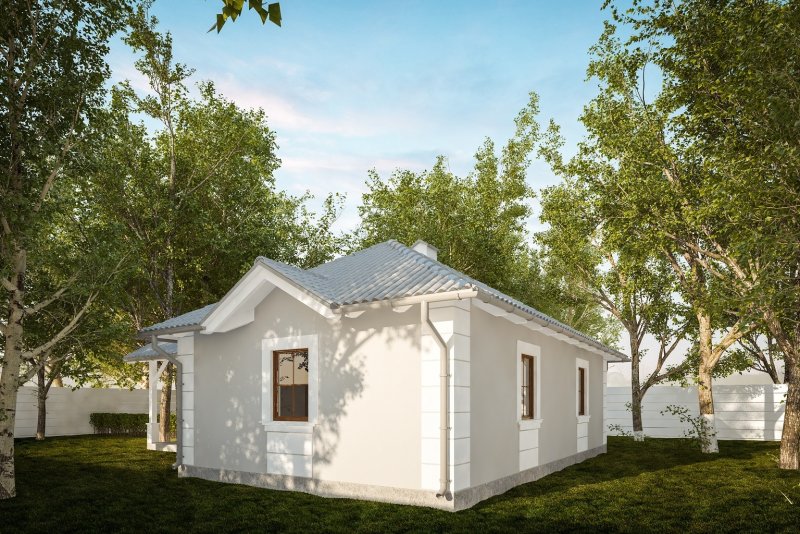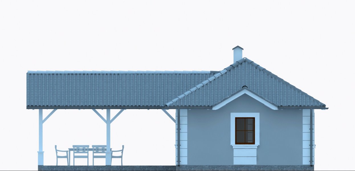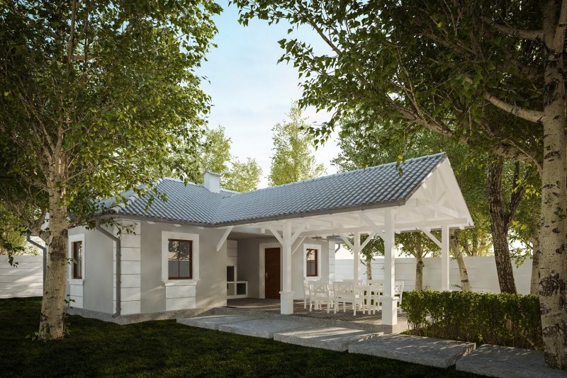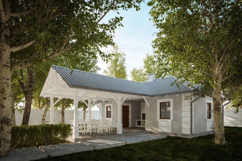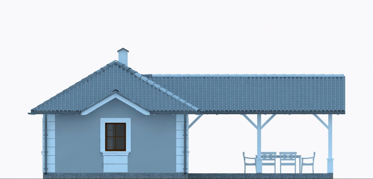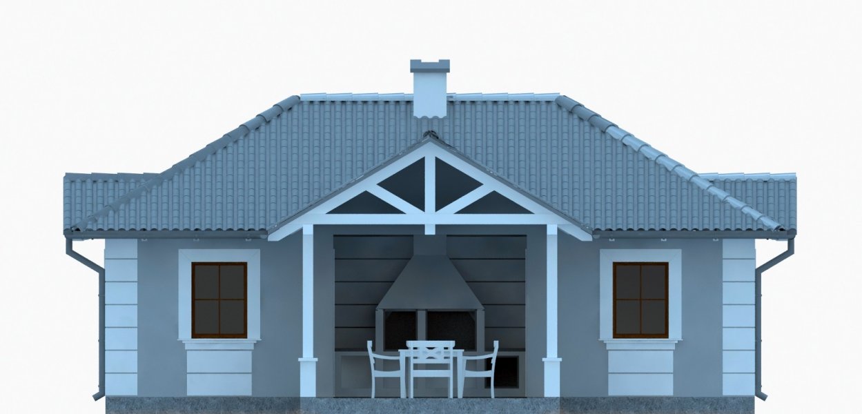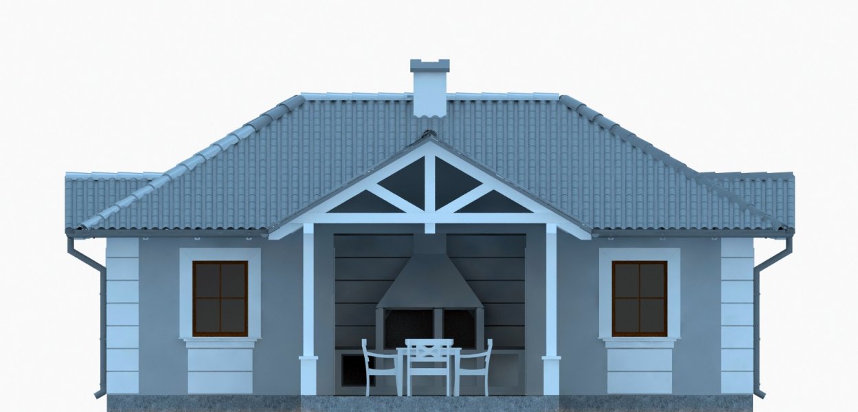 Projekt budynku parterowego, niepodpiwniczonego z dwoma pomieszczeniami gospodarczymi i altaną. Do projektu dołączone jest zestawienie: stali, więźby dachowej oraz stolarki drzwiowej i okiennej, jak również bezpłatna zgoda na dokonanie zmian.