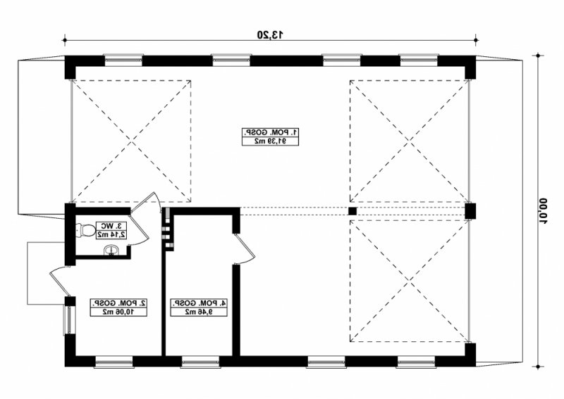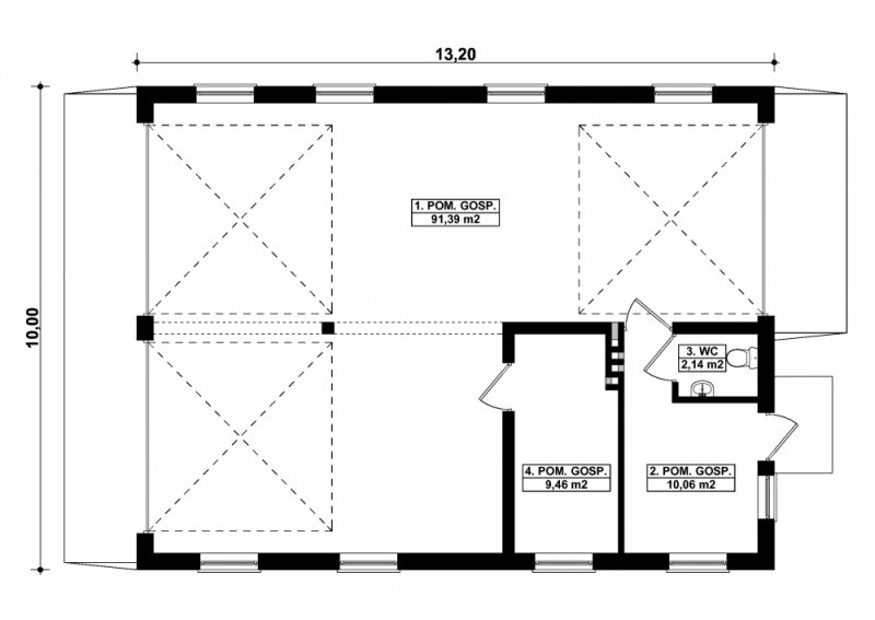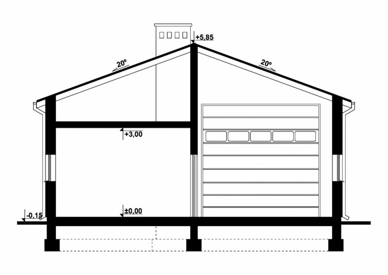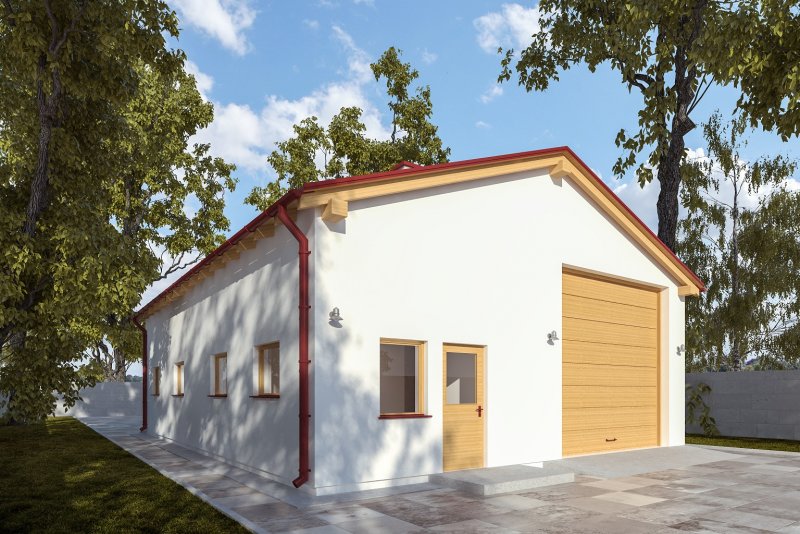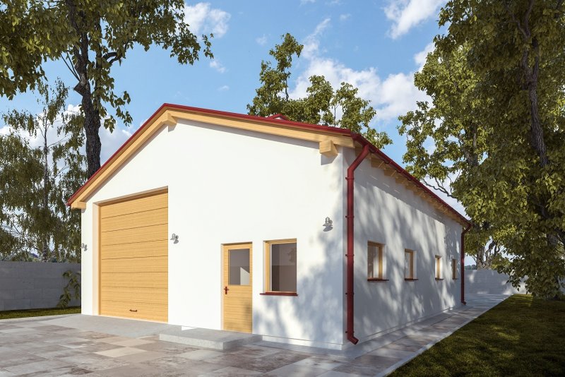 Projekt budynku parterowego, niepodpiwniczonego z trzema pomieszczeniami gospodarczymi i WC. Do projektu dołączone jest zestawienie: stali, więźby dachowej oraz stolarki drzwiowej i okiennej, jak również bezpłatna zgoda na dokonanie zmian.