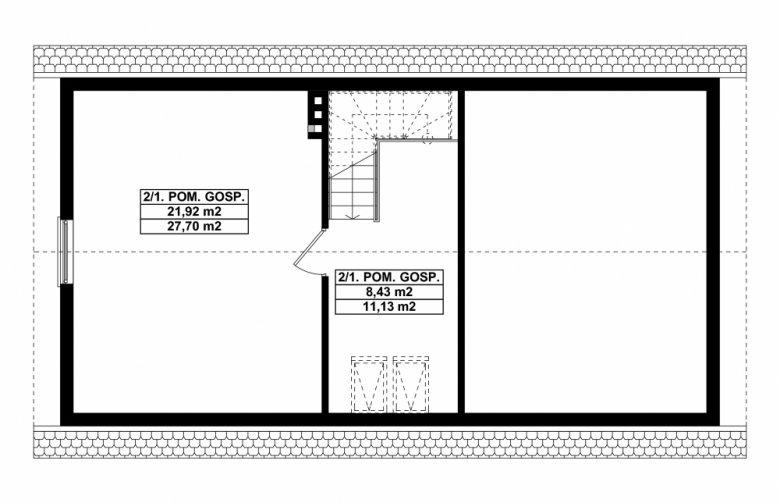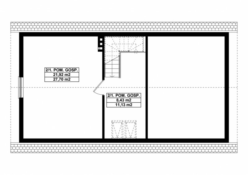 Projekt garażu dwustanowiskowego, parterowego, niepodpiwniczonego z poddaszem użytkowym, przeznaczonego dla samochodów dostawczych i osobowych z trzema pomieszczeniami gospodarczymi. Do projektu dołączone jest zestawienie: stali, więźby dachowej oraz stolarki drzwiowej i okiennej, jak równieżbezpłatna zgoda na dokonanie zmian.