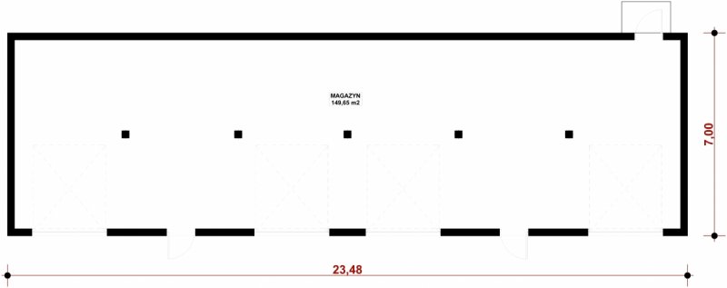 Projekt magazynu, parterowego, niepodpiwniczonego. Do projektu dołączone jest zestawienie: stali, więźby dachowej oraz stolarki drzwiowej i okiennej, jak równieżbezpłatna zgoda na dokonanie zmian.