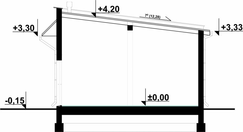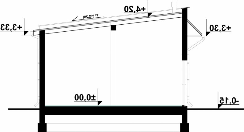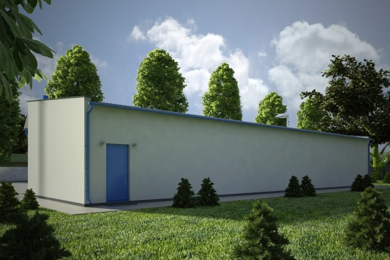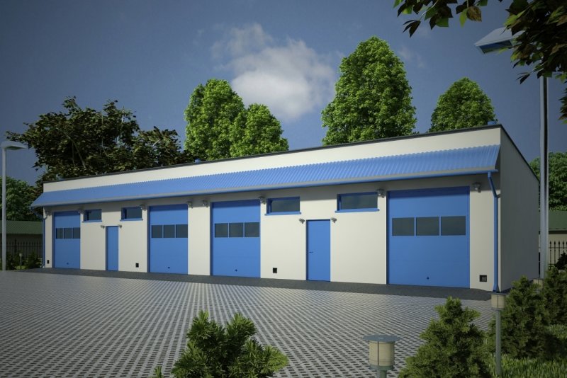 Budynek wykonany w technologii tradycyjnej. Ściany murowane z bloczków z betonu komórkowego grubości 24cm. Bramy o wymiarach 2.60x3.00m. Więźba dachowa jednospadowa, stalowa, pokryta blachą trapezową.