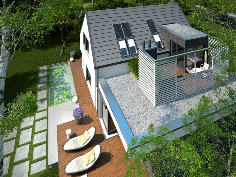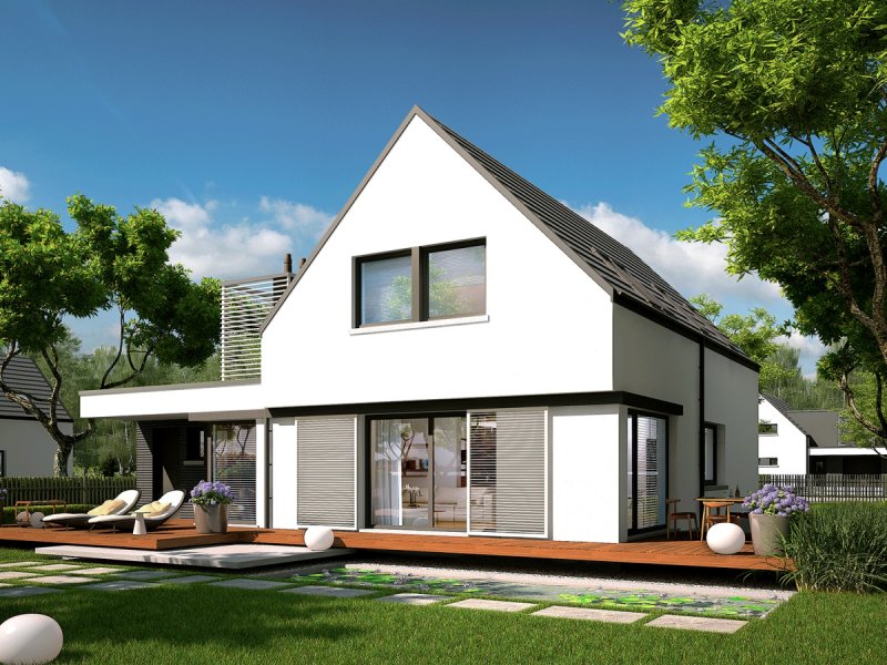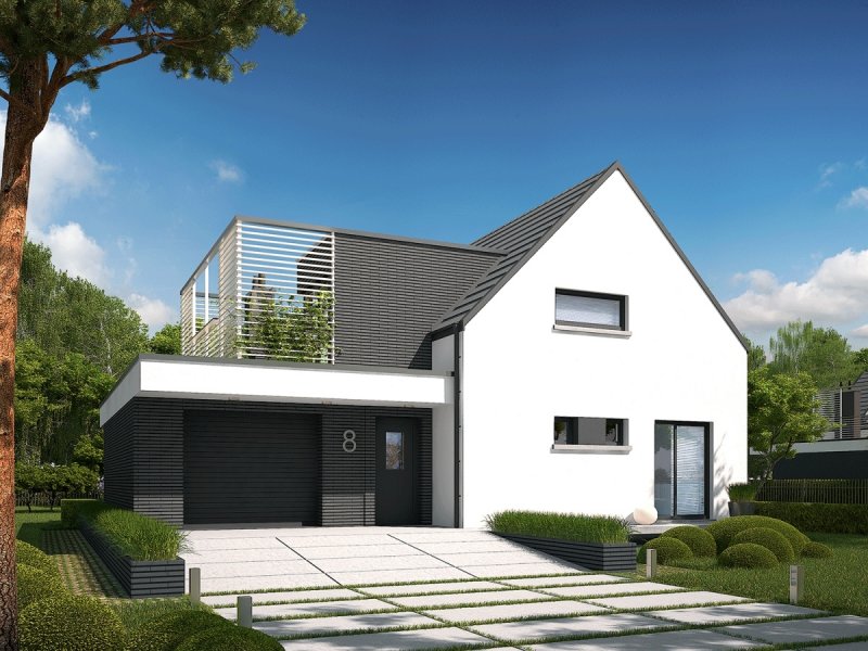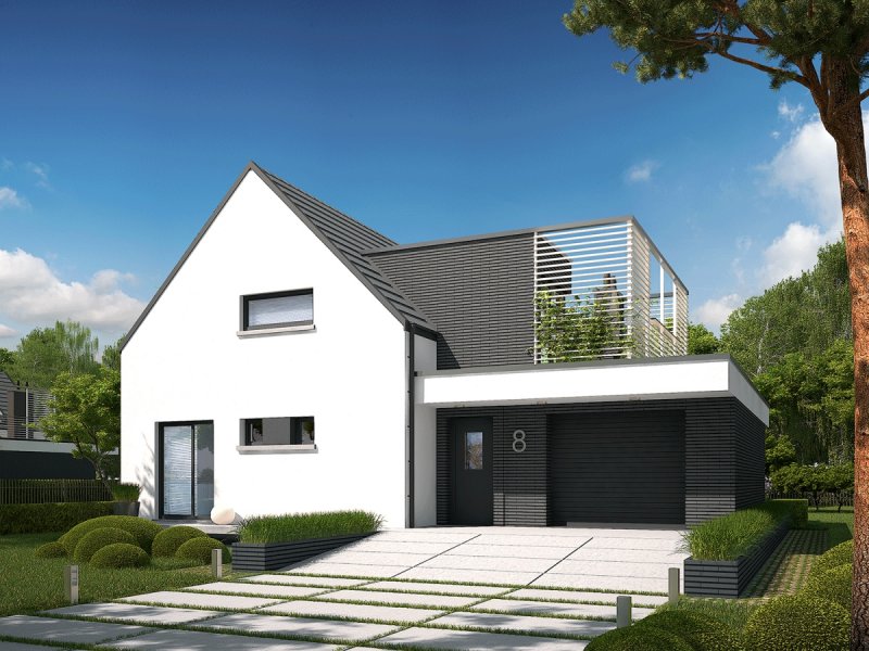 Dom Markus G1 to propozycja dla rodziny, która szuka nowoczesnego azylu z oryginalnym pazurem. Prosta forma została wzbogacono o atrakcyjne detale, które wspólnie z ciekawą kompozycją elewacji budują wyrazisty charakter budynku. Połączenie jasnej bieli i chłodnej szarości tworzy mocny i elegancki efekt – zapewnia poczucie harmonii i równowagi. Pomysłowe wykorzystanie przestrzeni nad garażem pozwoliło na aranżację dodatkowej strefy rekreacyjnej – kapitalny taras na poziomie poddasza pozwala złapać oddech od zabieganej codzienności. Jego niezwykły klimat przyciąga wszystkich domowników i zachęca do wspólnych rozmów przy filiżance kawy i lampce wina.
