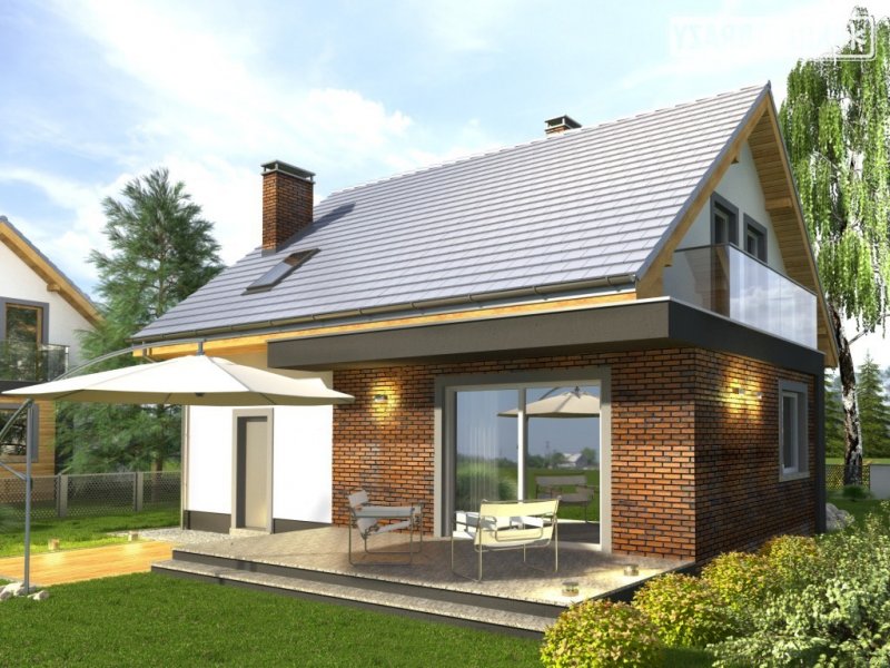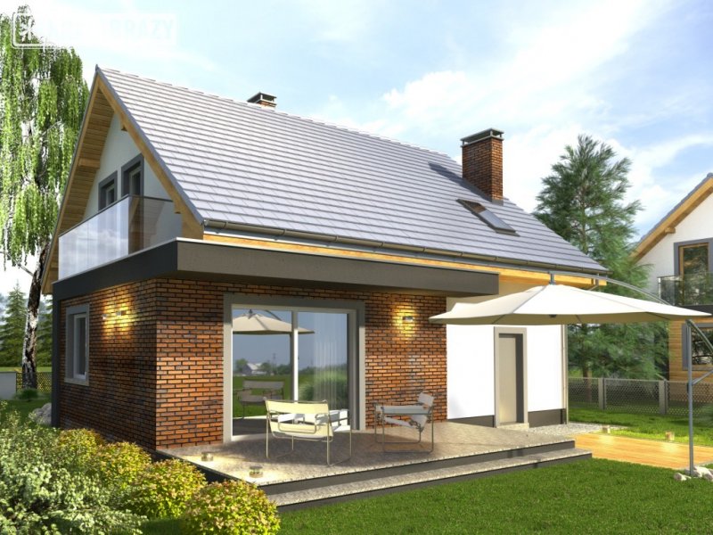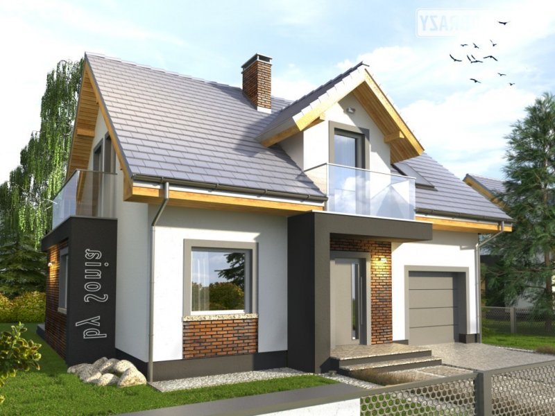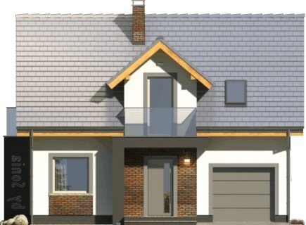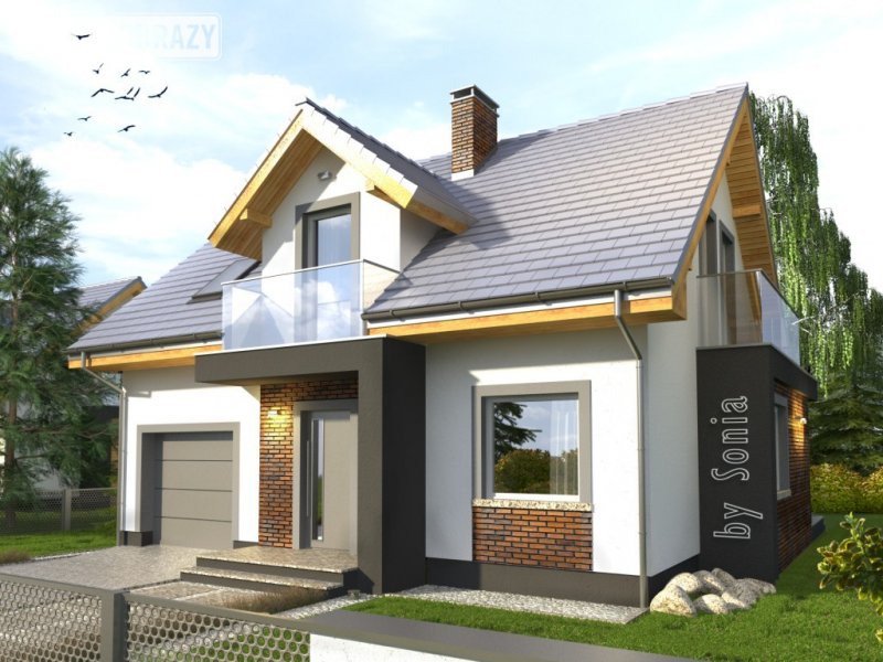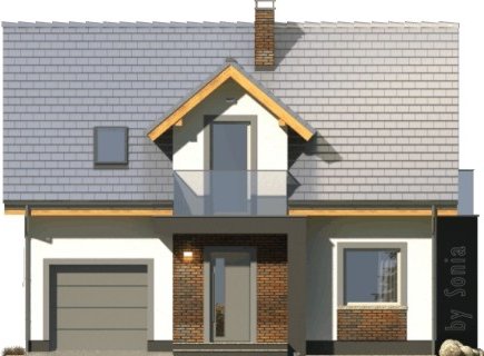 Dom Murano S to popularny projekt z poddaszem użytkowym w stylizacji ”by SONIA”. Śmiała, elegancka kolorystyka z fragmentami ścian z ciemnym tynkiem doskonale współgra z fakturą klinkierowych okładzin i nowoczesnymi detalami szklanych balustrad. Atutem domu jest także prosta bryła z dachem dwuspadowym i z tanią konstrukcją, co umożliwia jego realizację także przy ograniczonym budżecie. Wnętrze podzielono na część dzienną na parterze oraz nocną z trzema sypialniami, łazienką i garderobą na poddaszu. W przyziemiu znalazł się też garaż jednostanowiskowy, pomieszczenie gospodarcze z drzwiami na zewnątrz oraz miejsca na szafy w strefie wejściowej. Dokumentacja dostępna jest w wersji standardowej oraz w lustrzanej. Projekt przewiduje ściany zewnętrzne wykonane z bloczków gazobetonowych z dociepleniem. Fragmenty ścian okładane płytkami klinkierowymi albo wariantowo tynkowane. Strop gęstożebrowy. Pokrycie dachu można zastosować dowolne: dachówkę cementową albo ceramiczną lub też inny materiał wybrany na etapie adaptacji. Dopuszcza się wprowadzenie zmian wszystkich materiałów na dowolnie wybrane przez inwestora.
