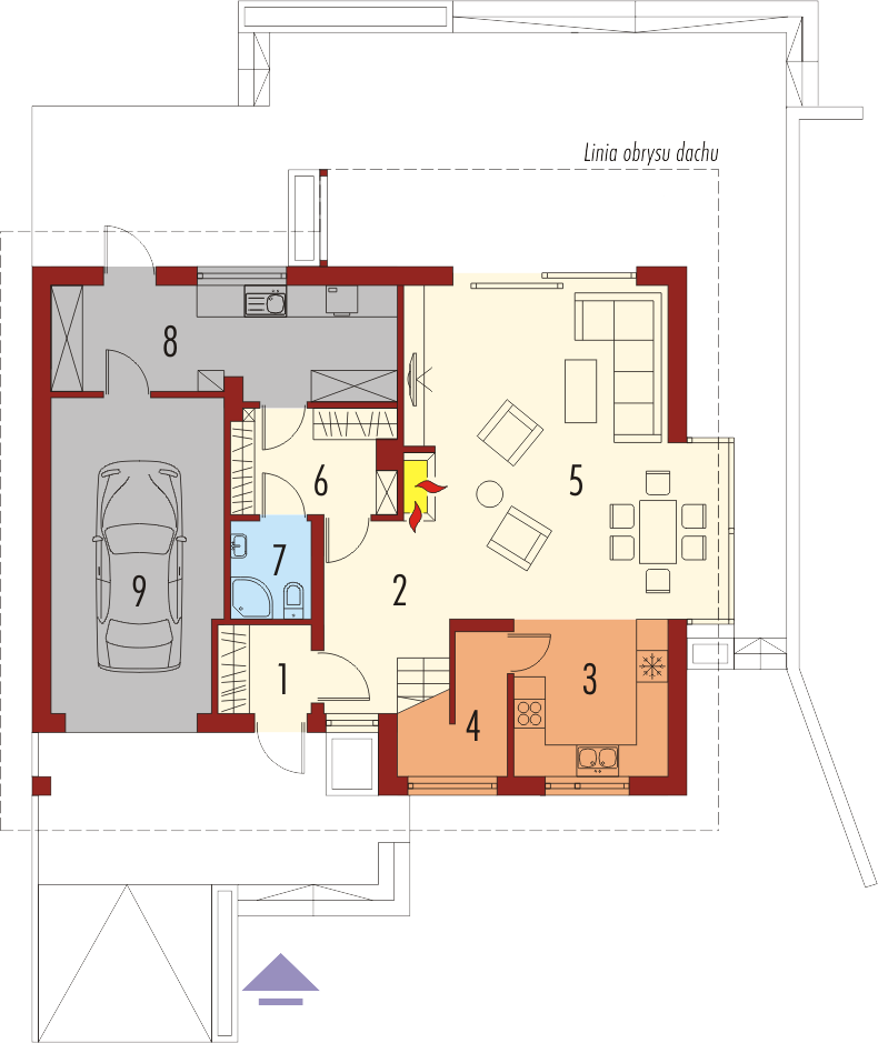 Pablo II G1 MULTI-COMFORT to klasyczna bryła w nowoczesnej szacie. Dzięki zastosowaniu dużej ilości przeszkleń wnętrze domu jest rozświetlone i przytulne. Na szczególną uwagę zasługuje nastrojowy kominek, którego palenisko jest widoczne aż z trzech pomieszczeń. Oryginalny charakter domu akcentują modernistyczne detale i ciekawie zaplanowane zadaszenia, osłaniające strefę wejściową oraz część tarasu. Pablo II G1 to propozycja dla miłośników subtelnej elegancji i funkcjonalnych rozwiązań.