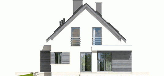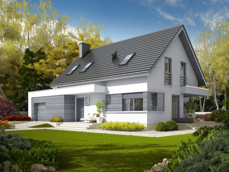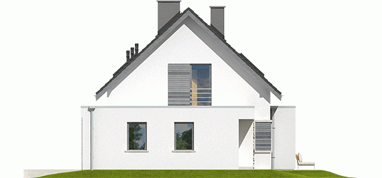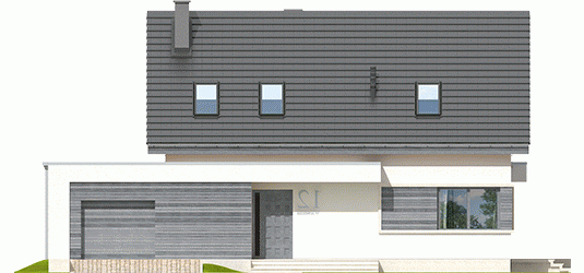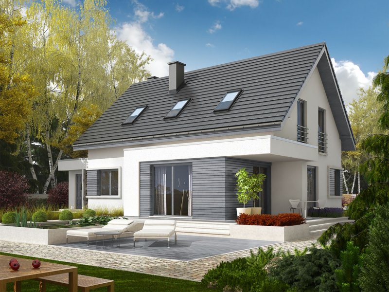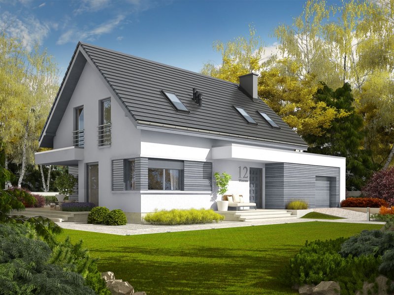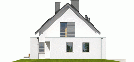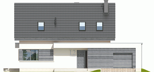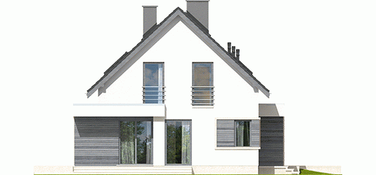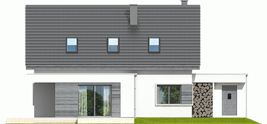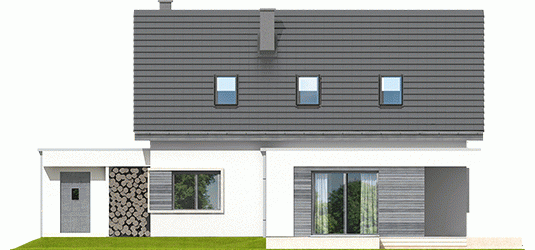 Patryk III G1 to dom, który łączy nowoczesność i funkcjonalność. Prosta bryła budynku została przełamana ciekawą linią zadaszania, które osłania strefę wejściową i część tarasu, a jednocześnie efektownie podkreśla współczesny charakter domu. Na elewacji króluje modne połączenie bieli i szarości, które do każdego krajobrazu wprowadzi powiew świeżej elegancji. Układ pomieszczeń zaprojektowano w myśl zasady ergonomia w parze z codzienną wygodą, zapewniając domownikom maksimum prywatności i swobody.