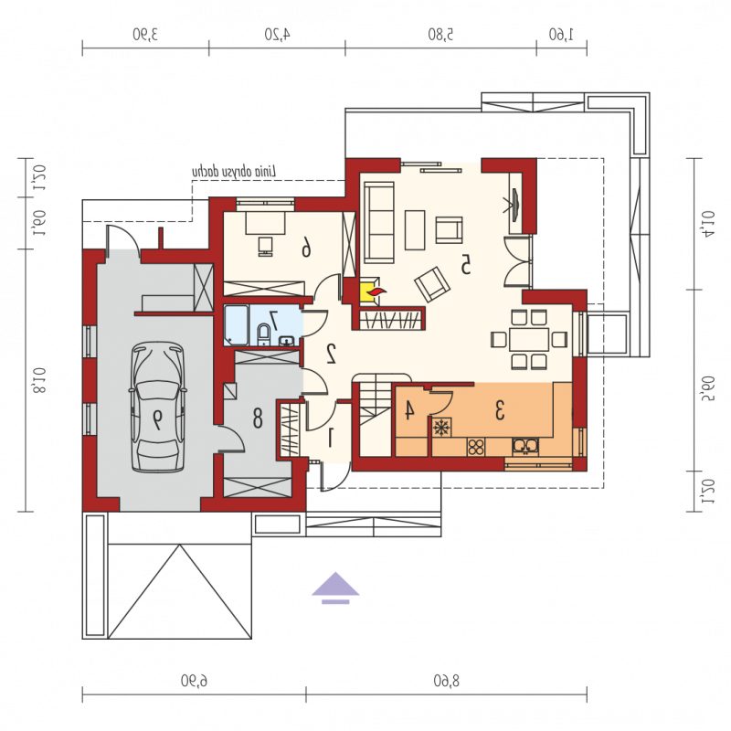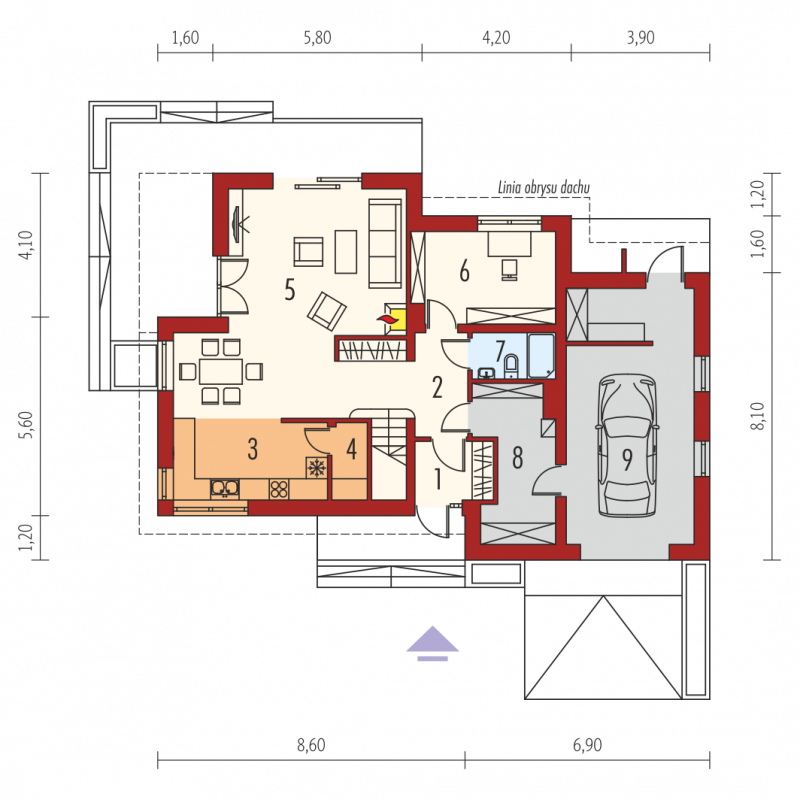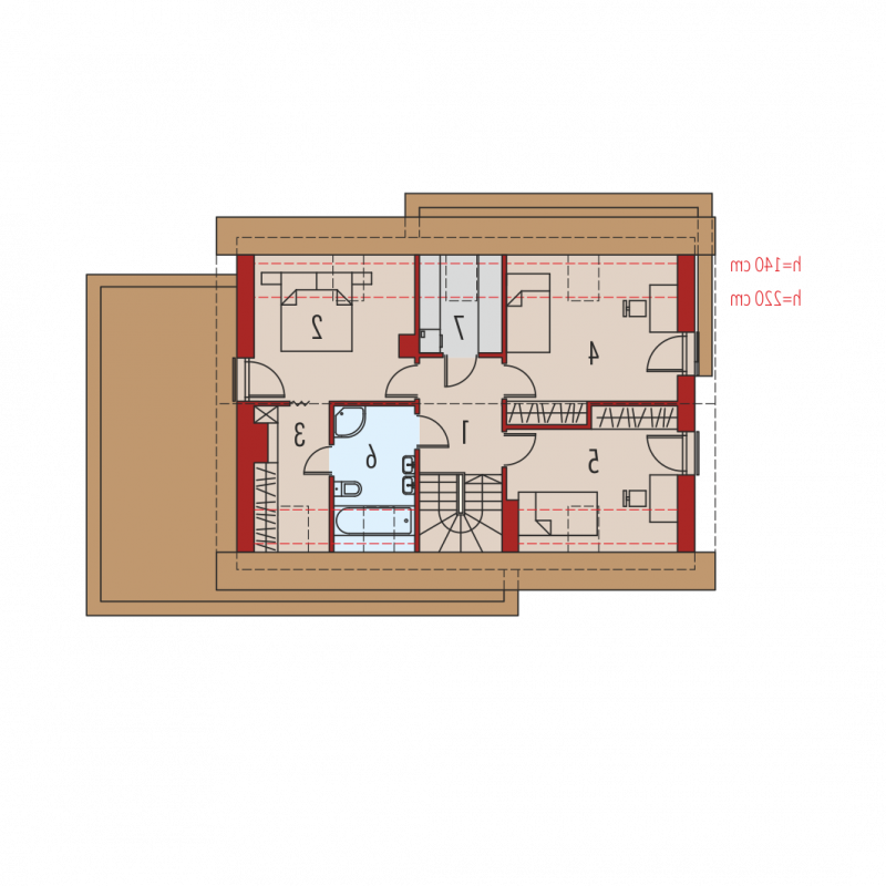 Dach: konstrukcja drewniana, ocieplenie wełna mineralna 30 cm, dachówka płaska lub inna o podobnych parametrach