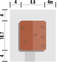 - Min. wymiary działki 16.60x18.70 m