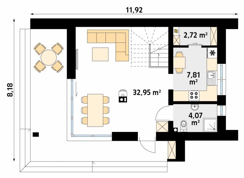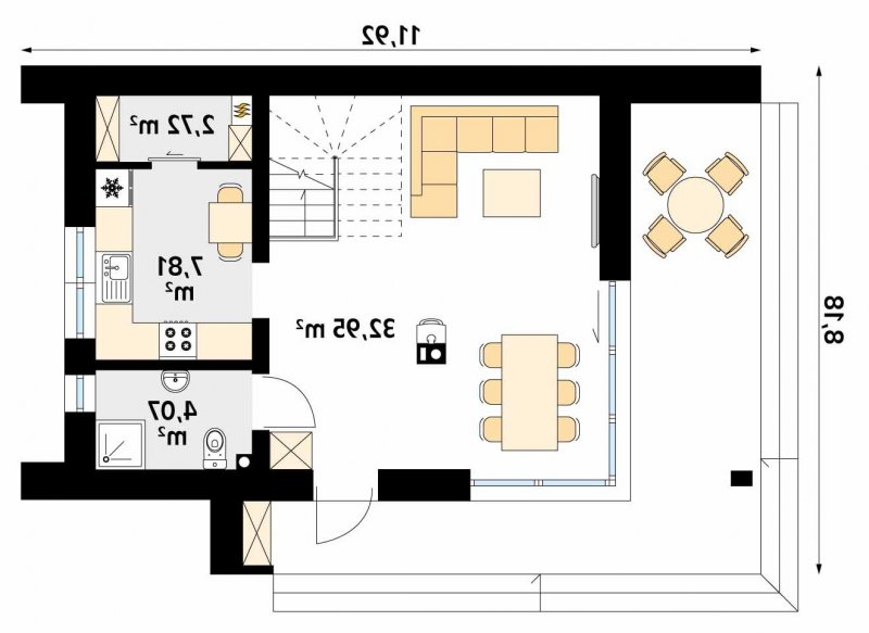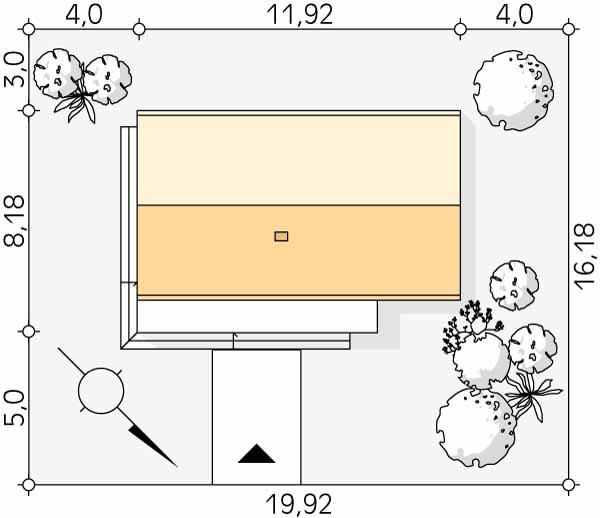- Min. wymiary działki 19.92x16.18 m