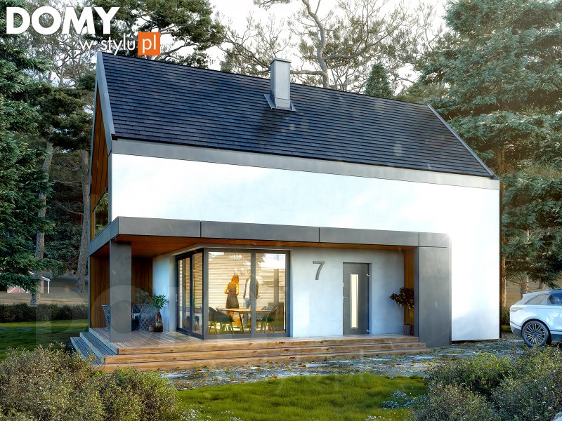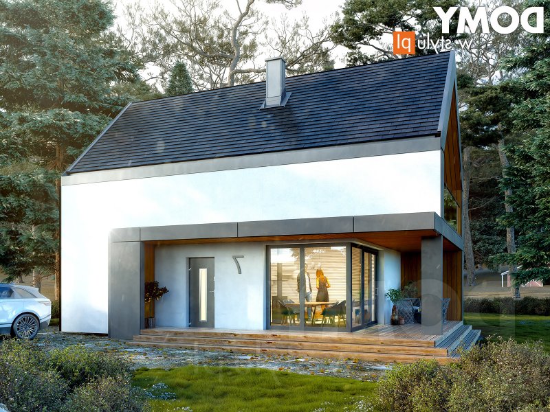 Projekt domu Teja to połączenie nowoczesnego designu z funkcjonalnością.Projekt idealnie wpasuje się na wąskie działki z wjazdem od południa. Minimalistyczny wygląd budynku podkreśla prosta bryła oraz dwuspadowy dach bez okapów. Wysokie przeszklenia na parterze i poddaszu zapewniają dużą ilość naturalnego światła oraz podkreślają nowoczesny charakter domu.