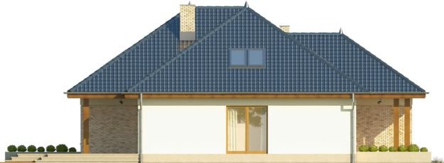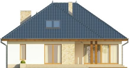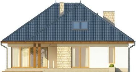 Projekt domu jest nowoczesny, elewacje wyróżniają sięstonowaną kolorystyką oraz ciekawymi proporcjami okien.Zaprojektowano funkcjonalne zadaszenia ponad wejściem do domu itarasem od strony ogrodu. Projekt zakupić można w warianciestandard, jak i lustro.