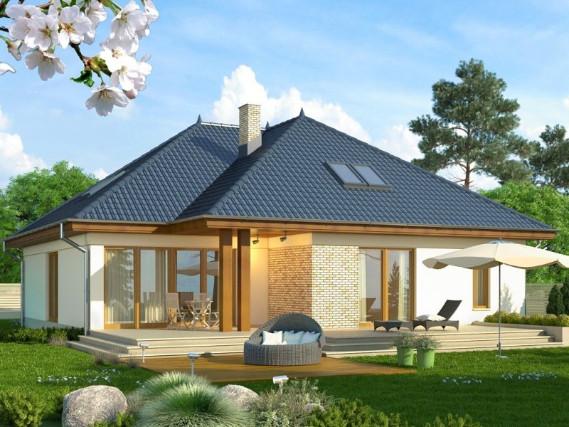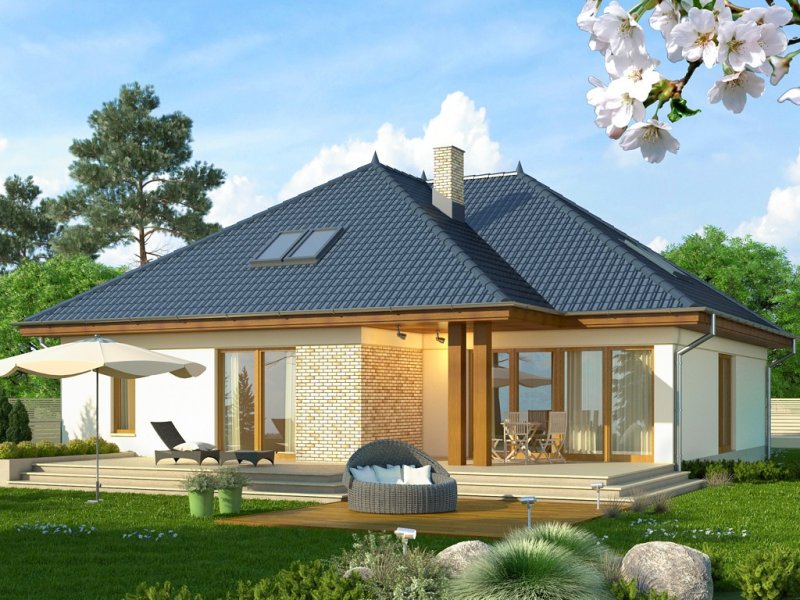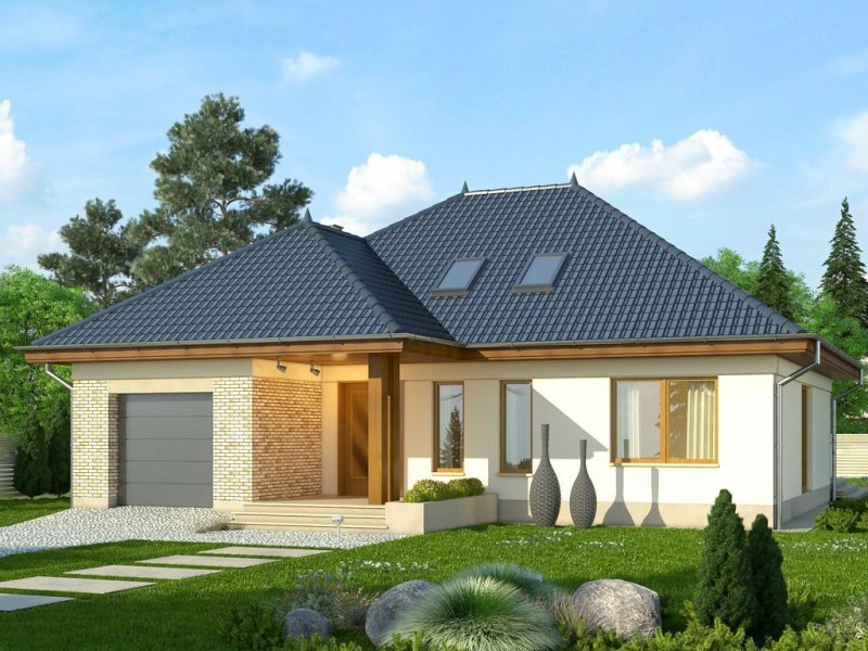 Ściany budynku zaprojektowano z betonu komórkowego zdociepleniem lub w innej technologii w ramach adaptacji. Stropgęstożebrowy, więźba drewniana, pokrycie dachówką ceramicznąlub cementową. Cokoły tynkowane, elewacje tynkowane, częściowo,podobnie jak kominy, okładane płytkami klinkierowymi lubkamiennymi.