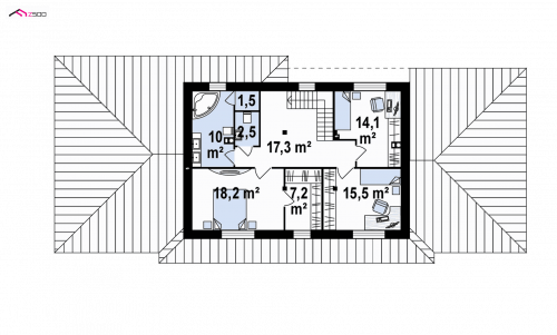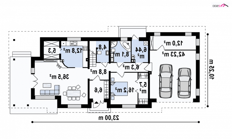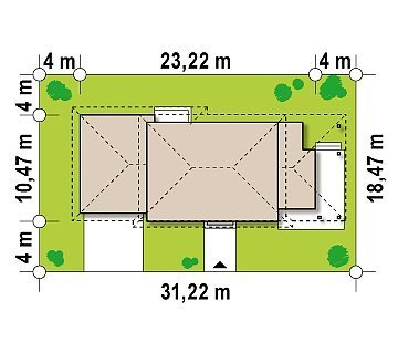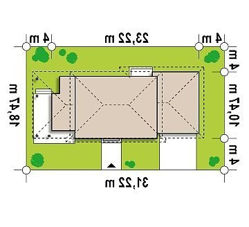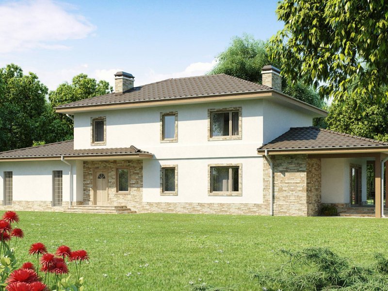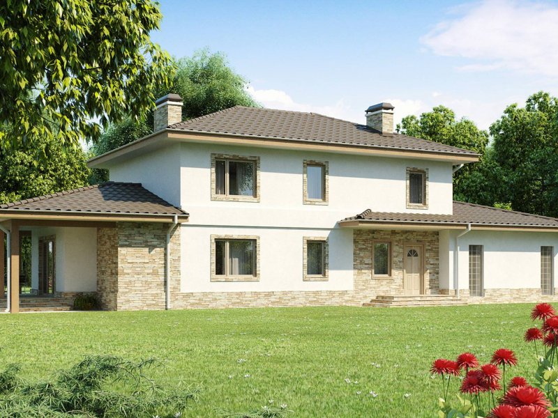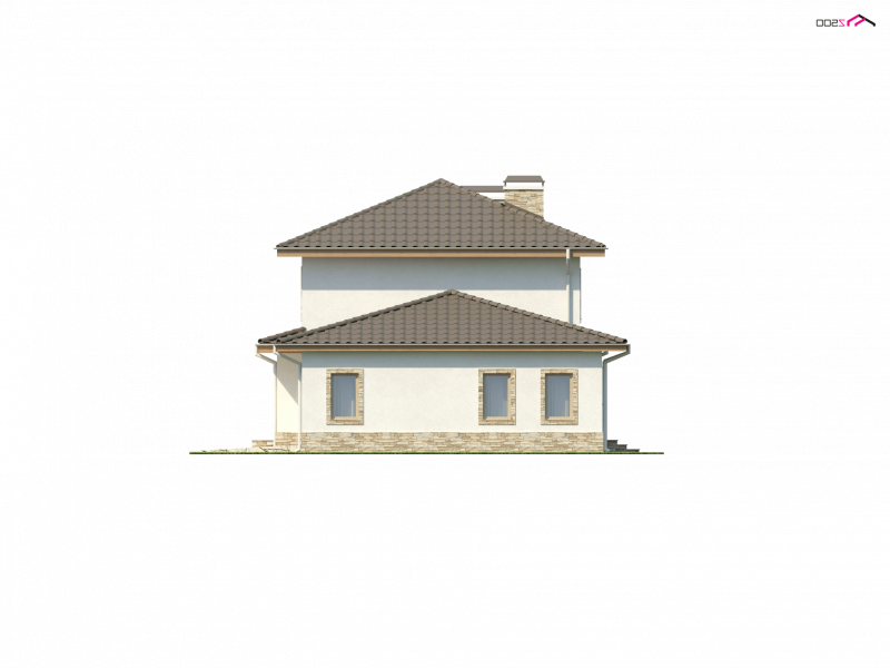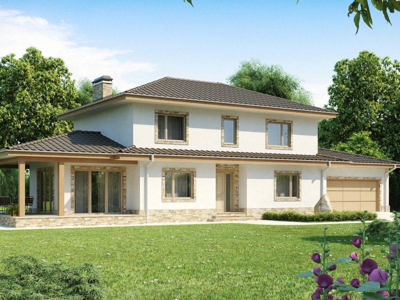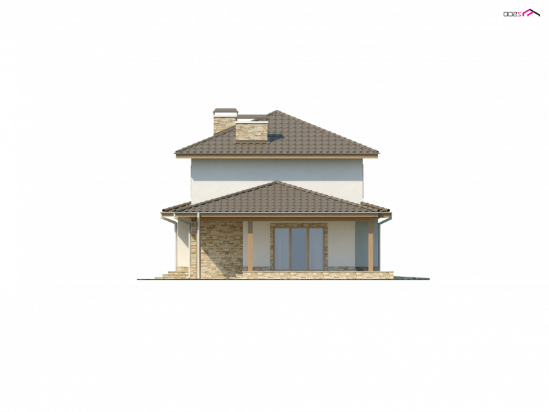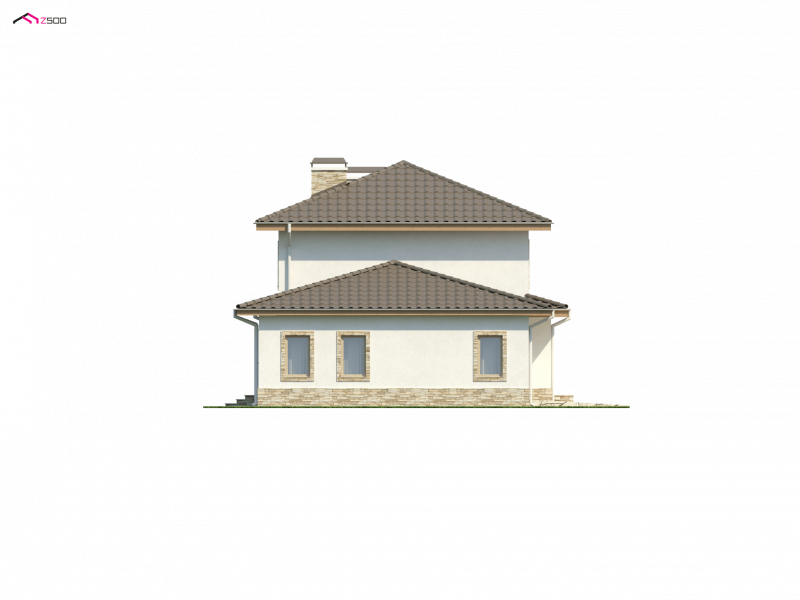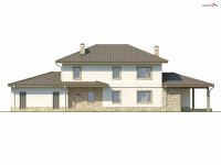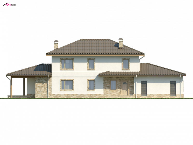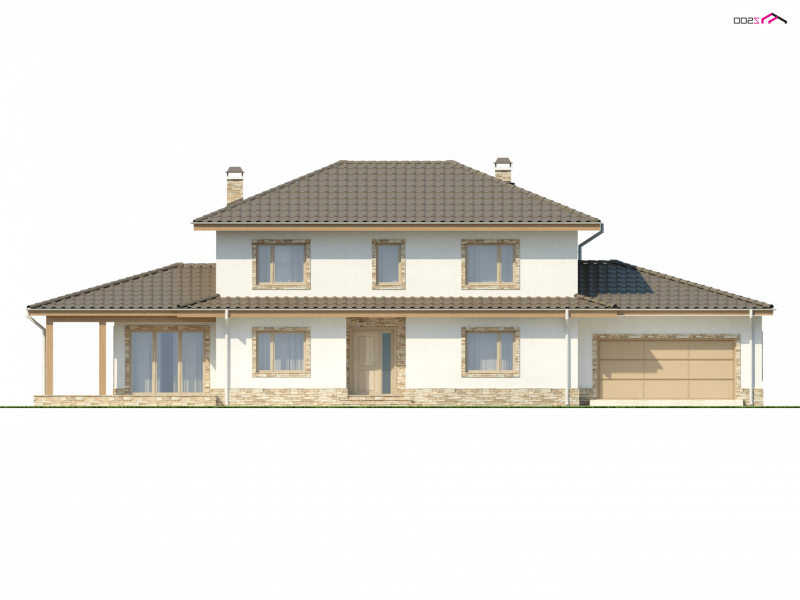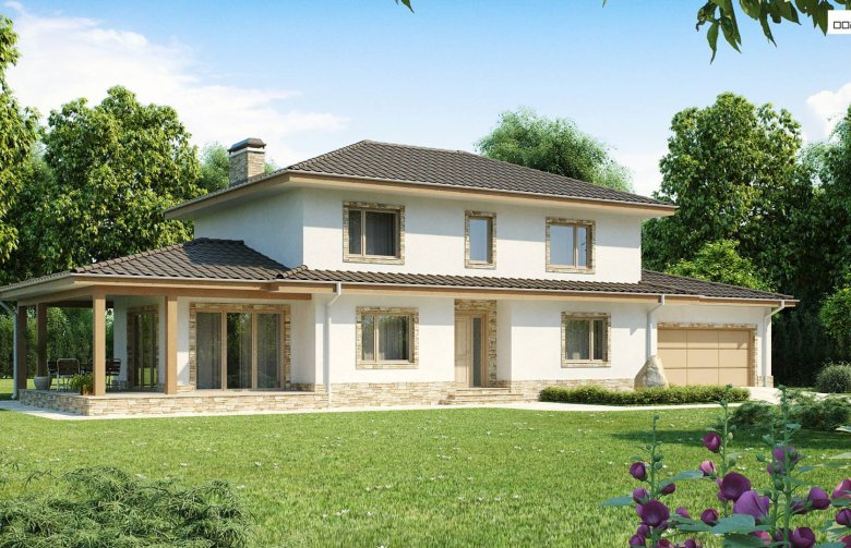 Z74 to projekt domu piętrowy z bogatym układem funkcjonalnym. Bryła budynku, rozbudowana w części parterowej, podzielona jest na część dzienną z tarasem i intymna strefę z przejściem do garażu