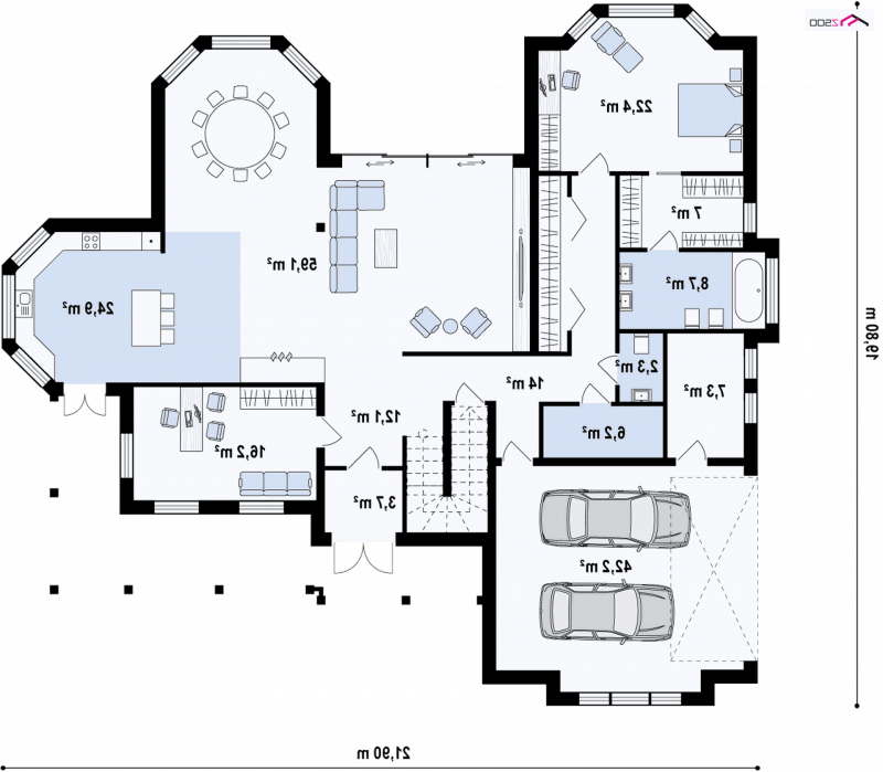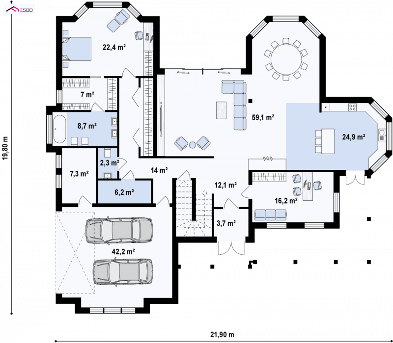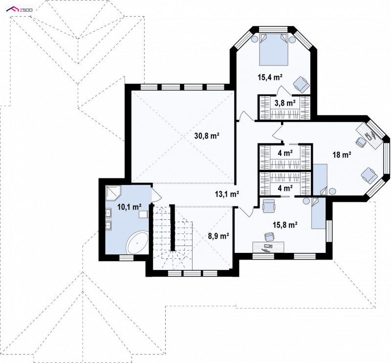 Projekt Zr12 to przestronny dom o powierzchni 296,36 m2z czterema sypialniami i dwiema łazienkami oraz jedną ubikacją. Jest optymalny dla rosnącej rodziny i osób ceniących sobie komfort wygodnego, luksusowego życia.
