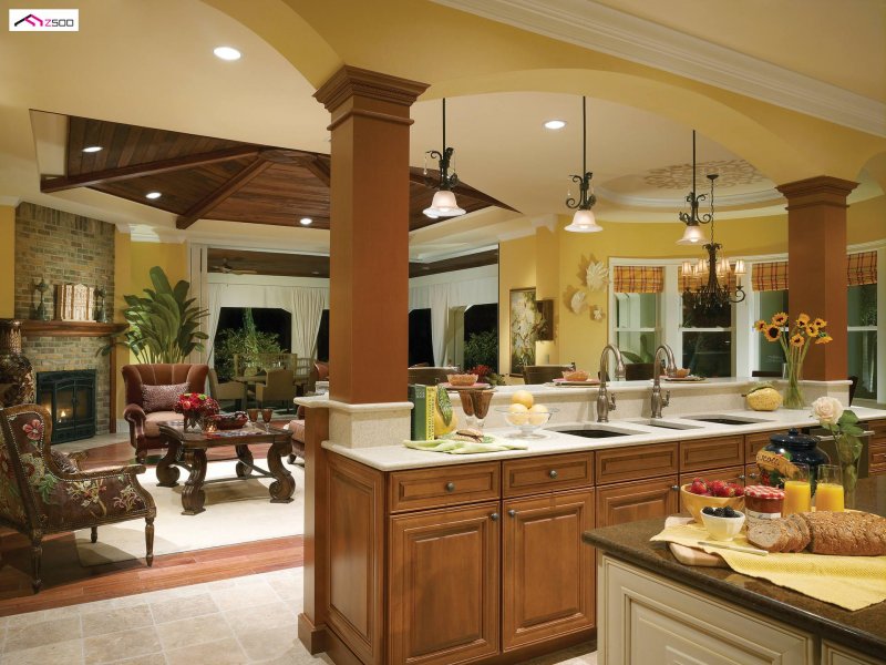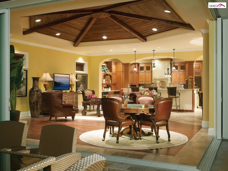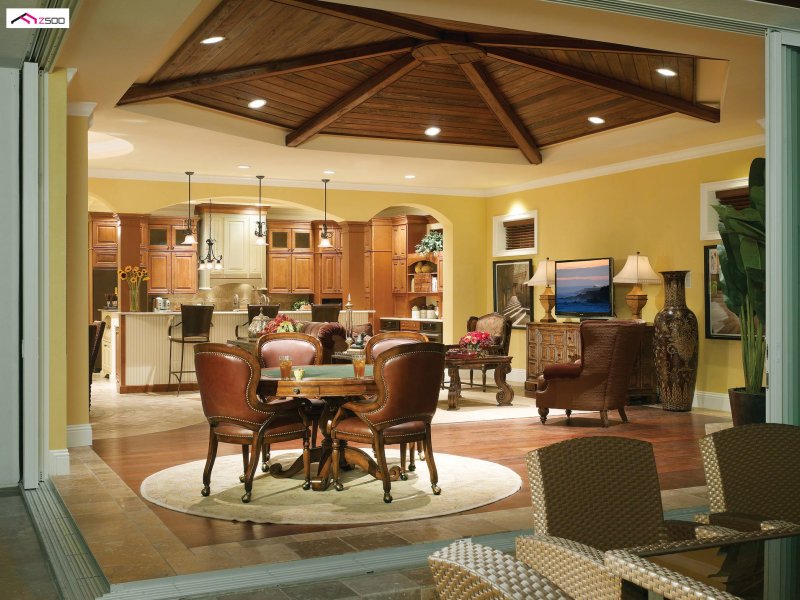 Główną część rezydencji „Camellia Manor” stanowi wspaniały salon z dwupoziomową przeszkloną ścianą oraz dwustronnym, wysokim kominkiem. Ponad przylegającą jadalnią znajduje się ozdobne sklepienie sufitowe, wsparte drewnianymi kolumnami i łukami. Pod schodami umiejscowiono spiżarkę na wino, która wraz z mieszczącym się nieopodal pomieszczeniem dla kamerdynera, dopełniają przestronną i znamienitą kuchnię. W kuchni zaś zaprojektowano dwie wyspy. Jedna to blaty przeznaczone do konsumowania posiłków, druga zaś, nieopodal pokoju rekreacyjnego, znajdująca się na otwartej przestrzeni, stanowi kącik dla podejmowania gości.