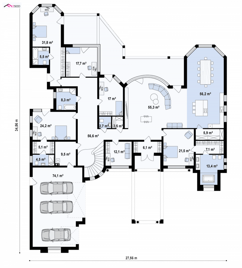 - Min. wymiary działki 42.86x35.56 m