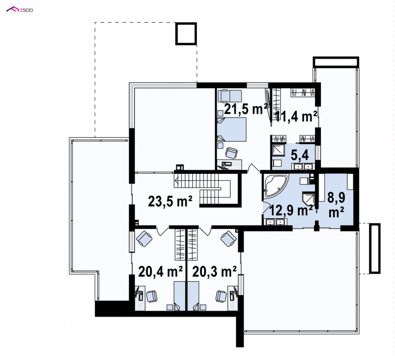 Zx127 jest projektem dużego, nowoczesnego, piętrowego domu, wywierającym ogromne wrażenie na każdym, kto gustuje w stylu modern.