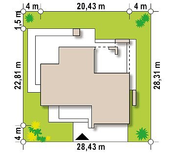 Wejście do domu zadaszono podcieniem, który chroni przed wiatrem, deszczem i śniegiem. W sieni zarówno po prawej jak i po lewej stronie mamy dużo miejsca przeznaczonego na szafy wnękowe, które pomieszczą przysłowiowe morze damskich butów i płaszczy.