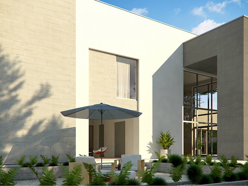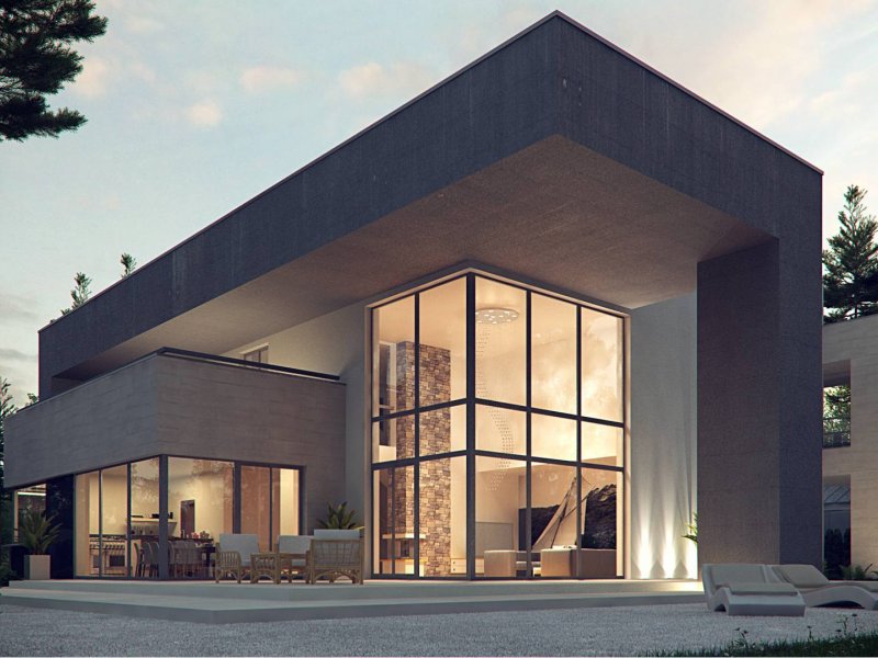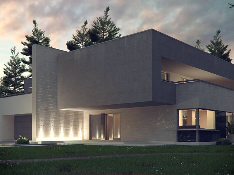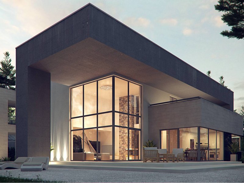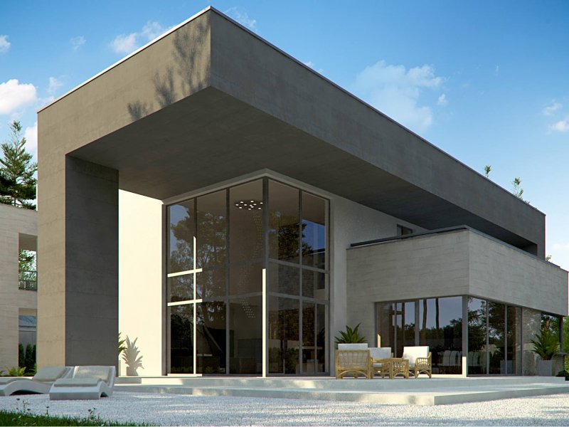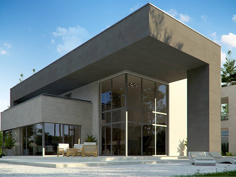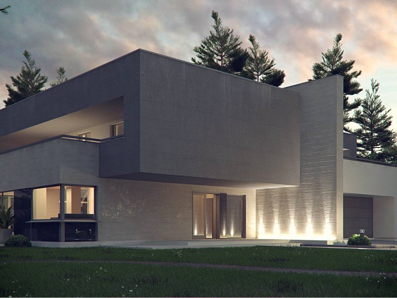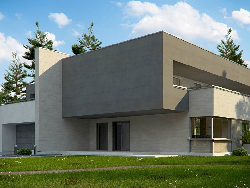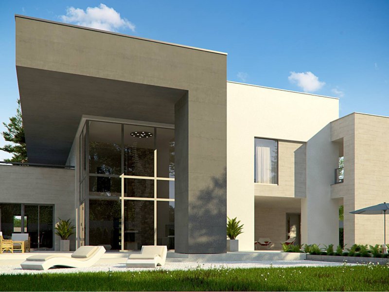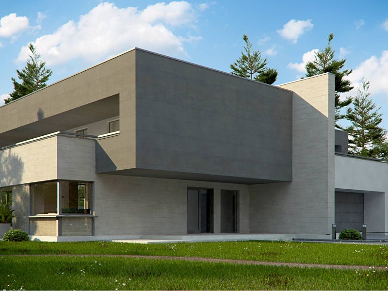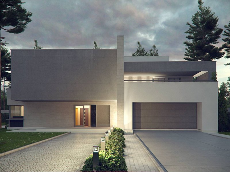 Proste, nakładające się na siebie geometryczne bryły, tworzą kilka oddzielnych warstw budynku, poprzeplatanych napawającymi ogromem powierzchni tarasami. Odcienie bieli i szarości możemy dobierać dowolnie, swobodnie dysponując tonacją kolorystyki elewacji.