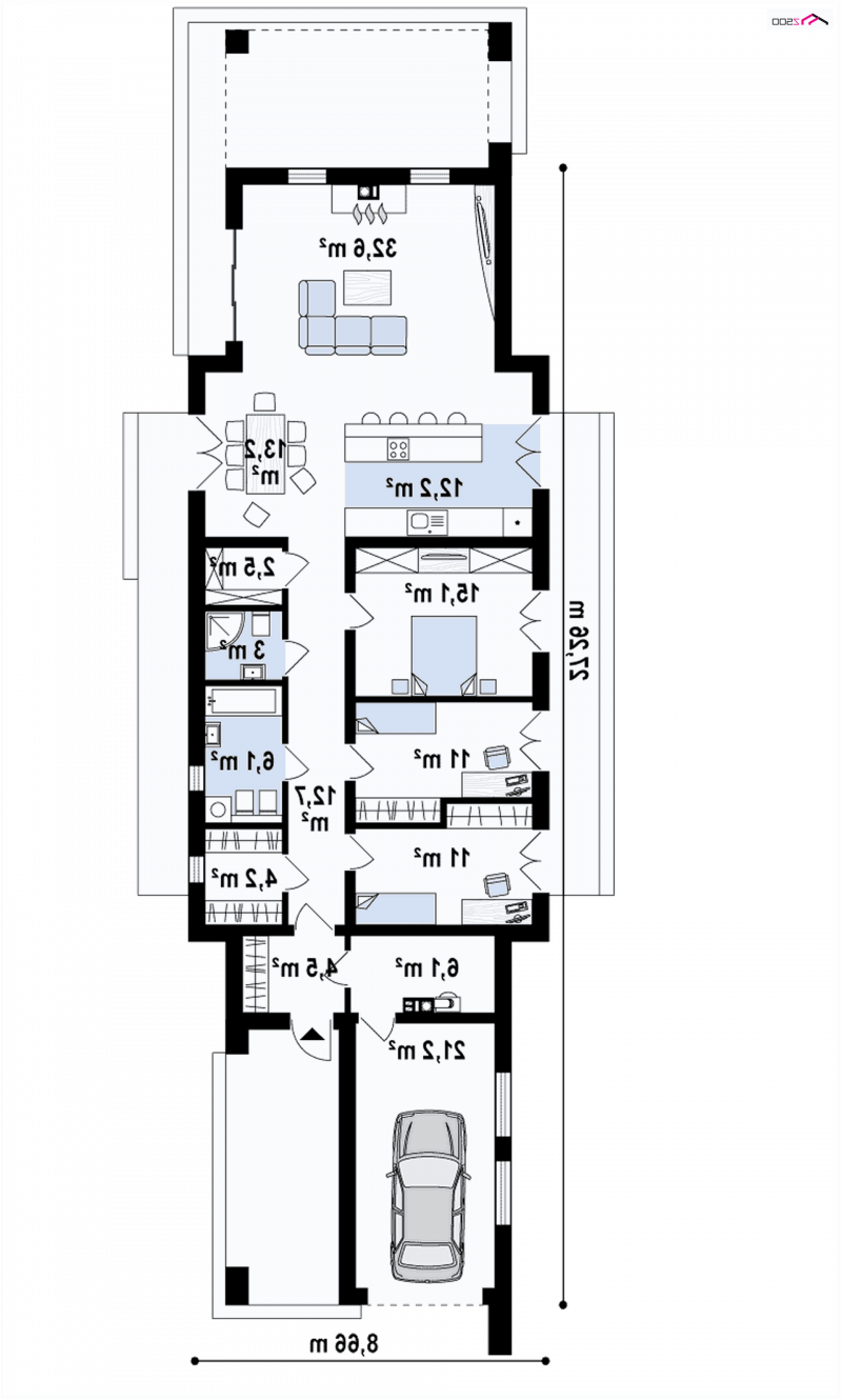 Zx129 to kolejny z serii domów Z500, z przeznaczeniem na wąska działkę, który dostarczy jego właścicielom ogromnej satysfakcji.