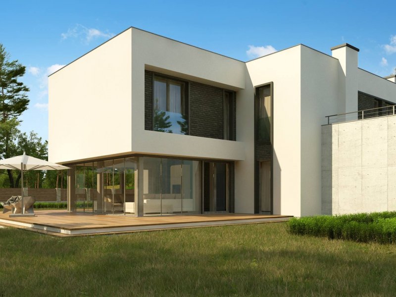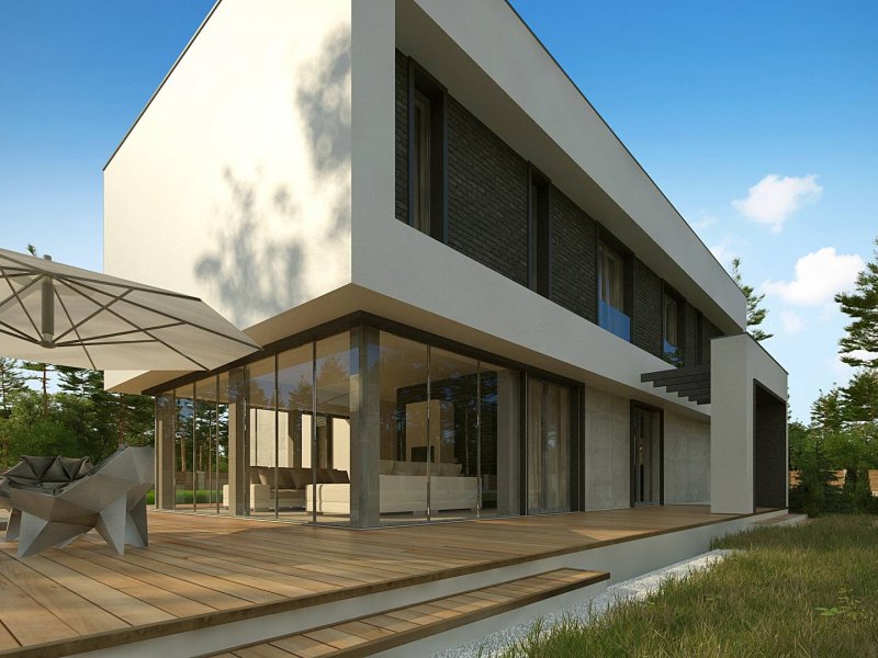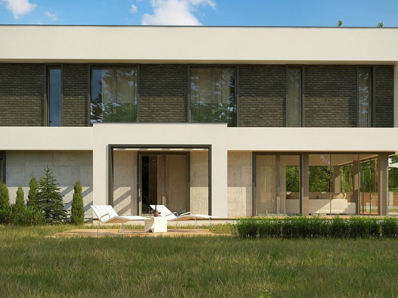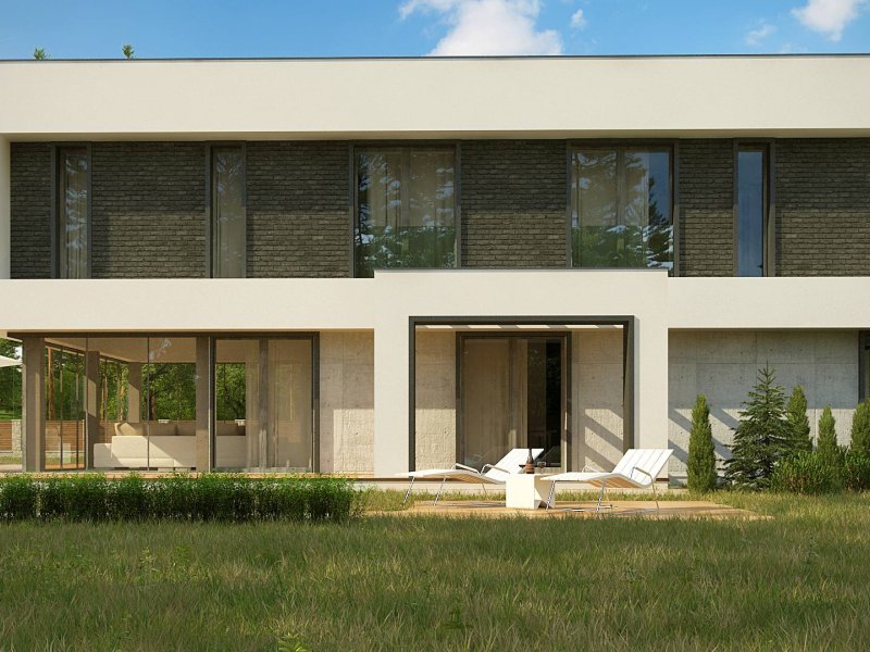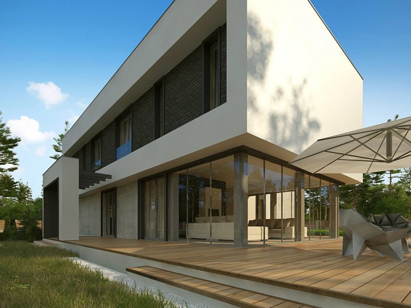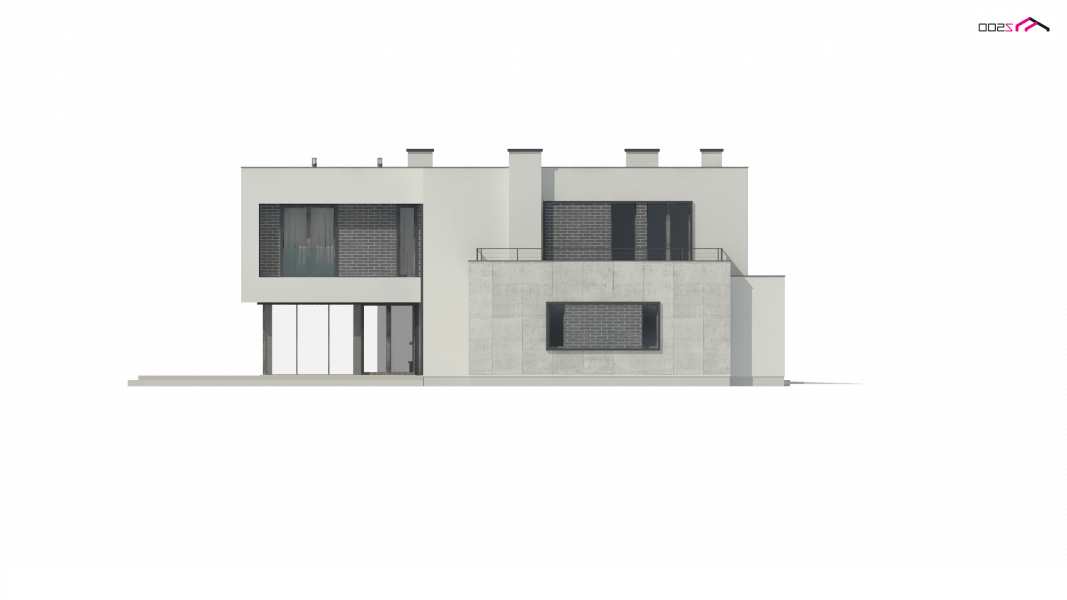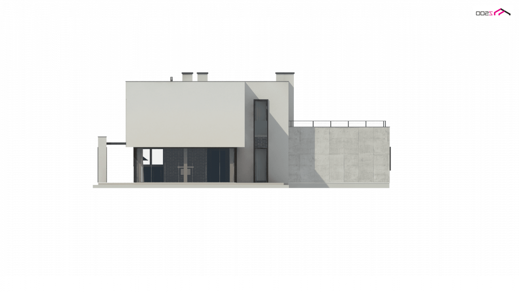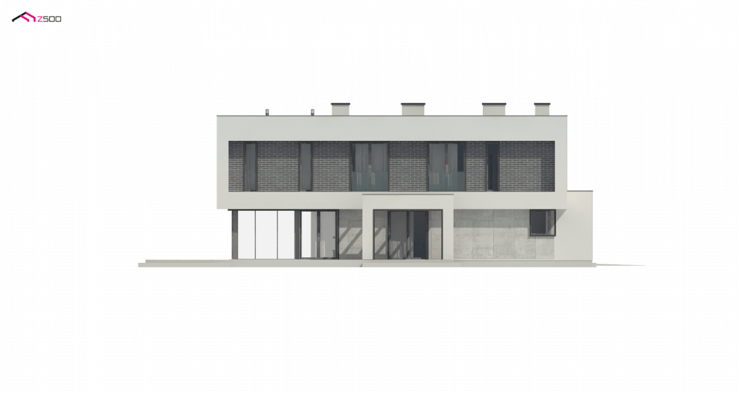 Zx130 Jest propozycją domu dla większej rodziny. Czysta forma, minimalistyczne kształty, nowoczesna bryła i współczesna architektura to główne zalety projektu Zx130. Materiały elewacyjne to beton architektoniczny, biały tynk, i ciemna płytka klinkierowa.