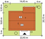 - Min. wymiary działki 22.45x20.15 m