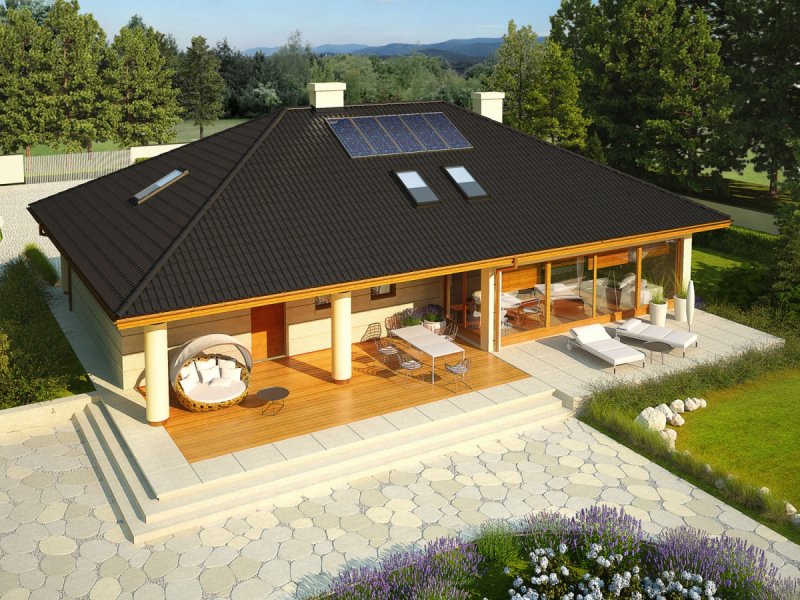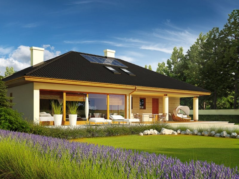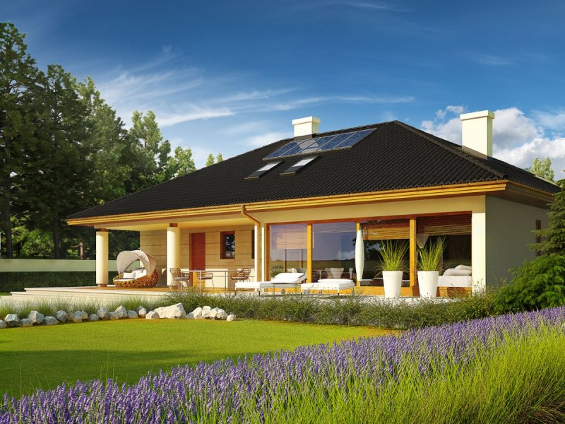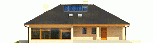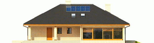 Dom parterowy z poddaszem do późniejszej adaptacji, niepodpiwniczony, z garażem dwustanowiskowym. Przeznaczony dla 4-osobowej rodziny. Strefa dzienna to przestronny salon z kominkiem i częścią przeznaczoną na jadalnię oraz wygodna kuchnia. Dodatkowo, zaplanowano łazienkę oraz praktyczne pomieszczenie gospodarcze z kotłem grzewczym. W strefie nocnej zaprojektowano trzy sypialnie, w tym jedną z odrębną garderobą oraz dużą łazienkę. Z garażu można przejść bezpośrednio do części mieszkalnej, po drodze zostawiając zakupy w pomieszczeniu gospodarczym. Alan IV G2 to efektowne połączenie tradycji i ultranowoczesności. Przemyślany układ funkcjonalny z łatwością dopasuje się do rytmu życia rodziny. Ciekawa bryła budynku, szykownie komponuje się z elewacją i atrakcyjnymi kolumnami, które podkreślają elegancki styl domu. Alan IV G2 to doskonała propozycja dla wielbicieli komfortowych wnętrz oraz magicznych detali. Istnieje możliwość: - podpiwniczenia budynku; - zbiźniaczenia i wykonania domu dwulokalowego