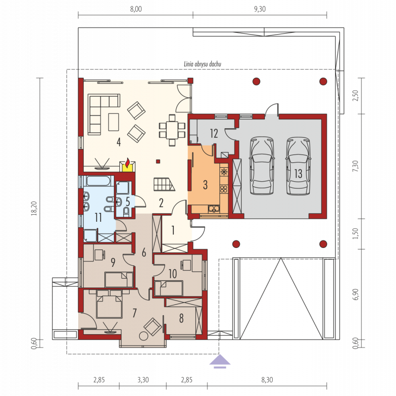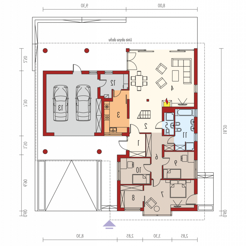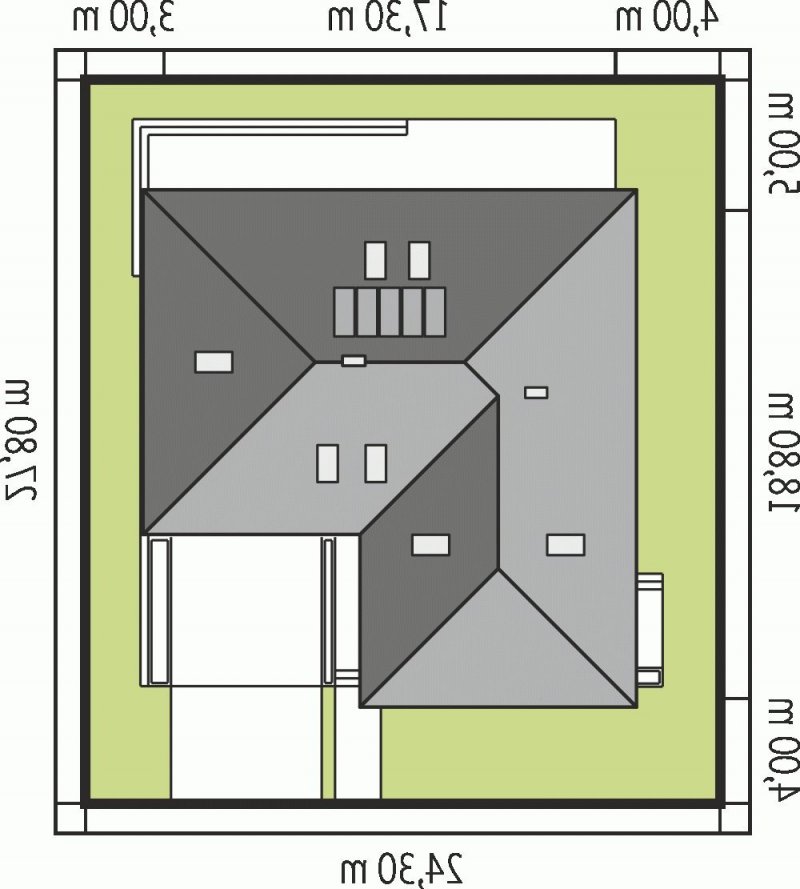 - Min. wymiary działki 24.30x27.80 m