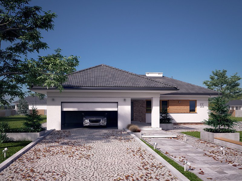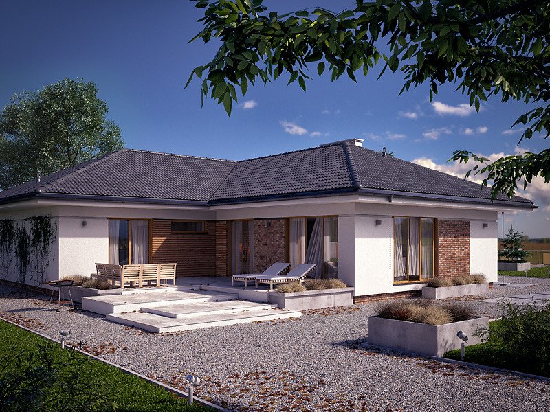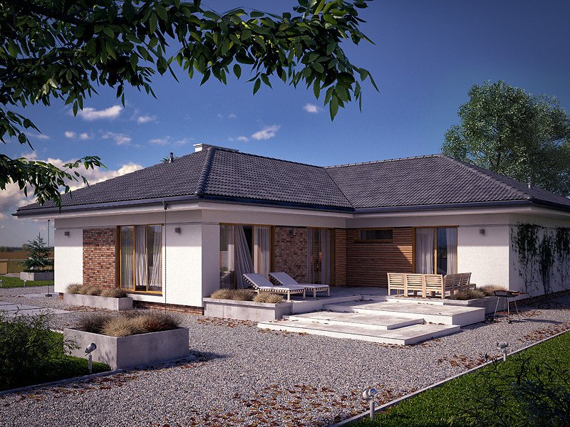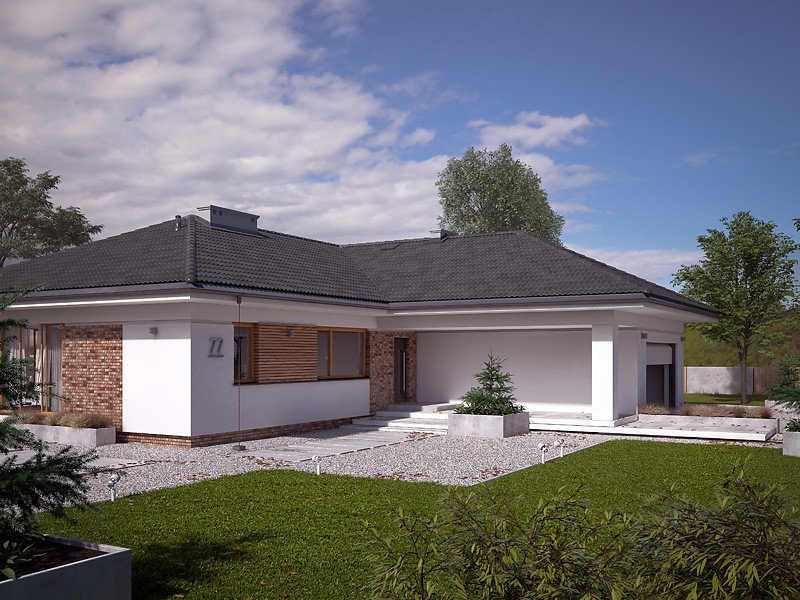 Ambrozja 10 jest propozycją domu parterowego zaprojektowanego z myślą o 5-osobowej rodzinie. Projekt charakteryzuje duża przestrzeń, która z całą pewnością podniesie komfort użytkowania. Prosta i zwarta bryła budynku pozwala na łatwą i stosunkowo niedrogą budowę. Całość prezentuje się bardzo efektownie i okazale. Uroku dodają duże przeszklenia oraz nowoczesne materiały zastosowane na elewacjach. Projekt doskonale łączy nowe i tradycyjne trendy w polskiej architekturze, przez co należy do grupy projektów domów najczęściej wybieranych przez inwestorów.