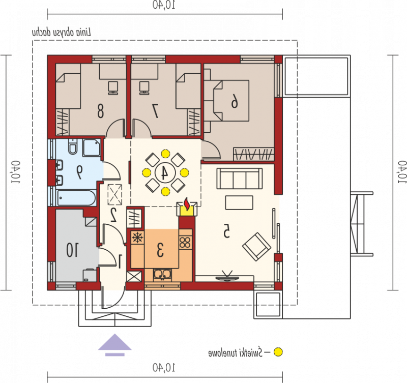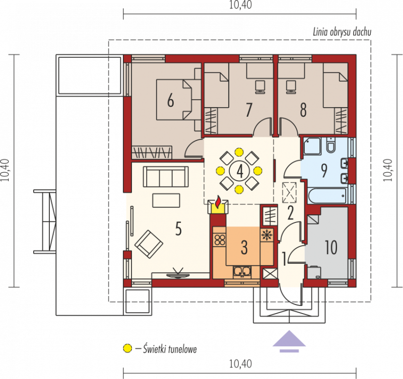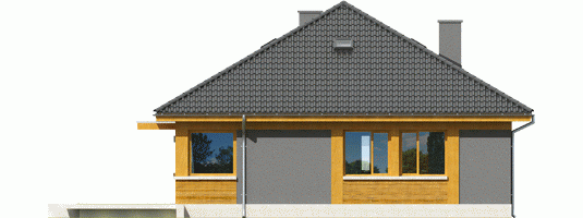 Dom parterowy, niepodpiwniczony. Przeznaczony dla 3-4-osobowej rodziny W strefie dziennej znajdują się salon z kominkiem, kuchnia oraz centralnie usytuowana jadalna. Znalazło się tu również dostępne z wiatrołapu pomieszczenie gospodarcze z kotłem grzewczym. Strefę nocną tworzą trzy wygodne sypialnie wraz z dużą łazienką. Anabela z wdziękiem wpisuje się w każdy krajobraz. Dzięki zastosowaniu świetlików tunelowych do wnętrza domu swobodnie przenika naturalne światło, które opromienia przestrzeń jadalni swoim słonecznym ciepłem. W sercu domu usytuowano nastrojowy kominek, którego urok można podziwiać aż z trzech pomieszczeń. Prostą bryłę wzbogacają ciekawe zadaszenia, osłaniające strefę wejściową oraz wyjście na taras. Anabela to blask elegancji w duchu nowoczesnej prostoty. Dom z Kolekcji Bianco Ergonomia – Ekonomia – Funkcjonalność – Czysta forma – Glamour Kolekcja Bianco Domy z Kolekcji Bianco zostały zaprojektowane z najwyższą troską o ergonomię i komfort użytkowy. W każdym projekcie z Kolekcji Bianco zminimalizowano ilość pionów instalacyjnych. Zgrupowanie w bliskim sąsiedztwie pomieszczeń, do których konieczne jest doprowadzenie wody, kanalizacji oraz systemu wentylacji pozwala ograniczyć koszty związane z wykonaniem instalacji wewnętrznych oraz dodatkowych pionów wentylacyjnych. W domach z Kolekcji Bianco strefa dzienna jest wyraźnie oddzielona od części gospodarczej i sanitarnej, co podnosi komfort użytkowy, a dodatkowo akcentuje reprezentacyjny charakter. Strefę nocną zaprojektowano z dbałością o jej intymny charakter. W Kolekcji Bianco dominuje ascetyczna wizja piękna – prosta, czysta, doskonała. Istnieje możliwość: - zbliźniaczenia - wykonania domu dwulokalowego