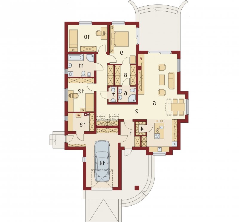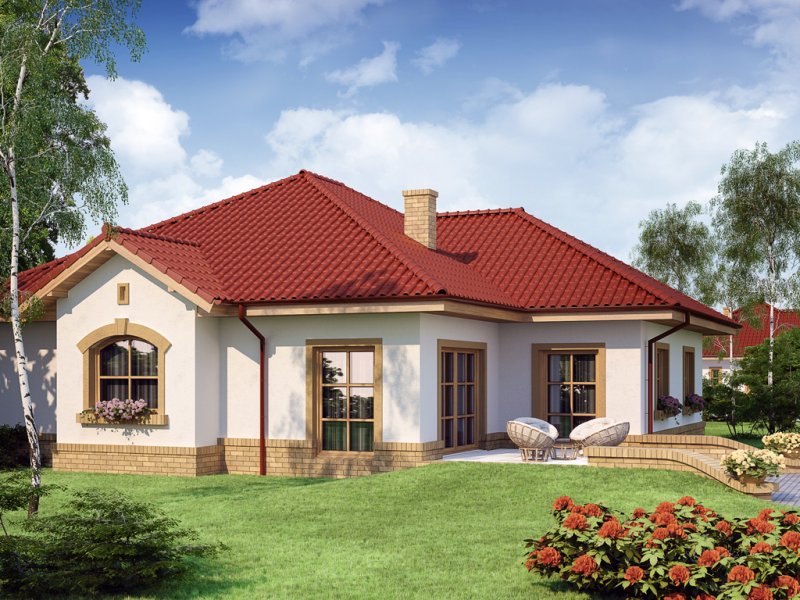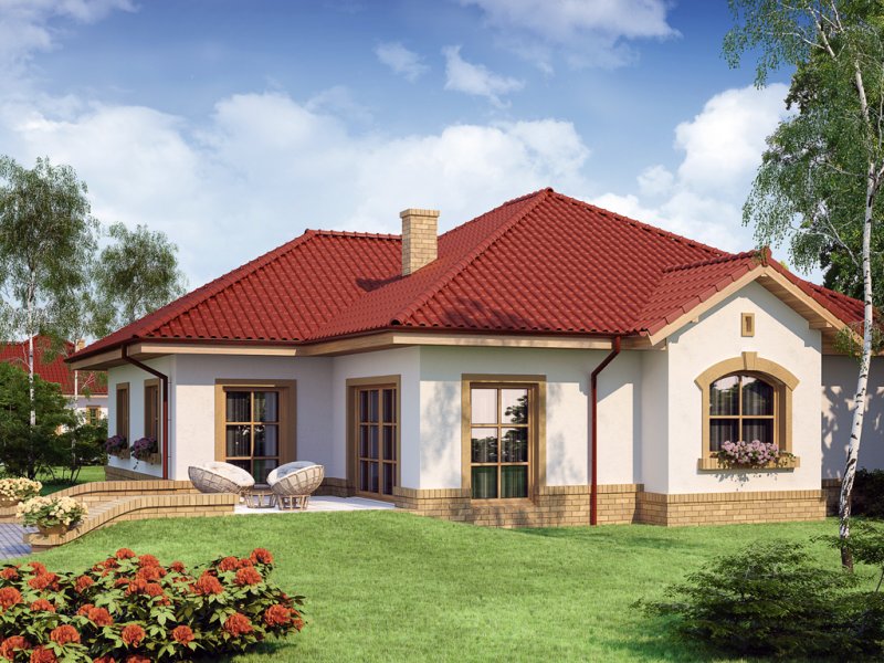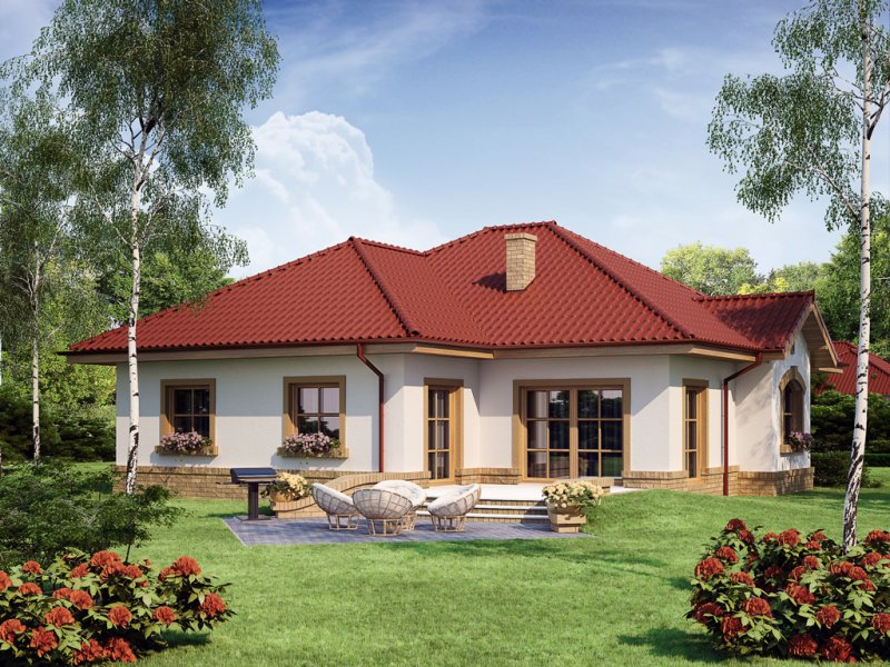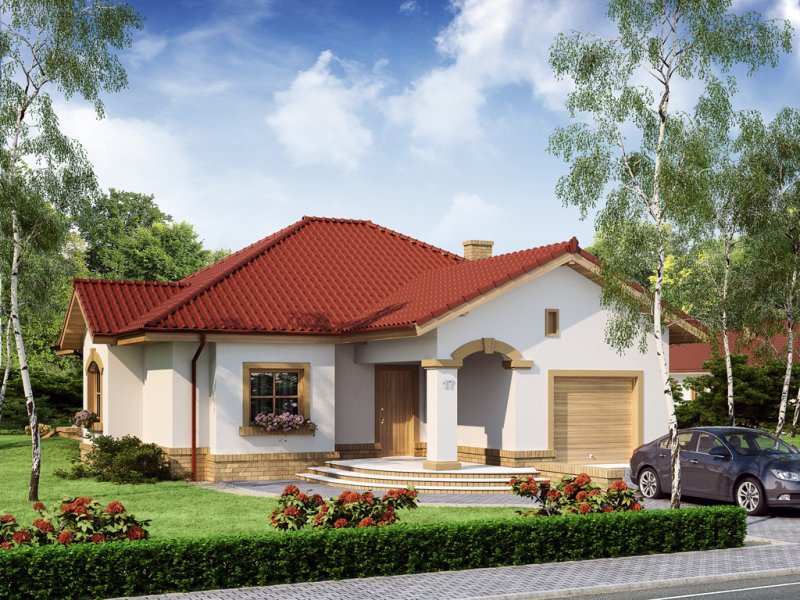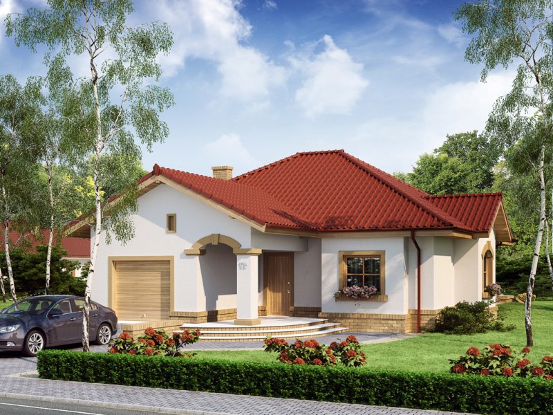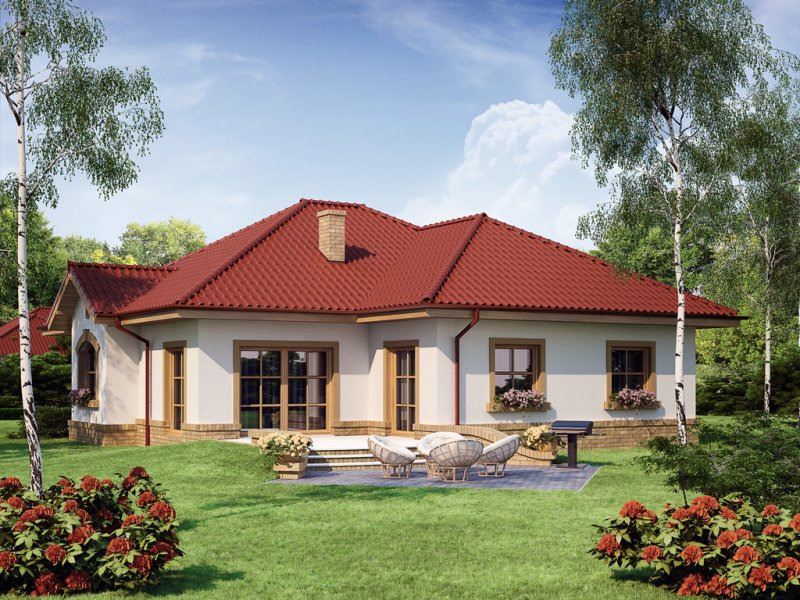 Ciekawa bryła urozmaicona przez tradycyjne elementy oraz funkcjonalny układ wnętrza z klarownym podziałem na część publiczną i prywatną to główne atuty Arystotelesa – parterowego domu idealnego dla 4 osobowej rodziny.