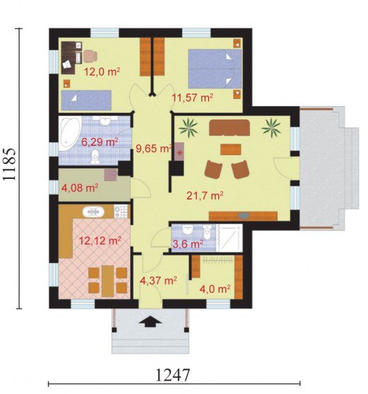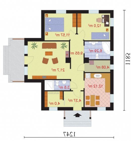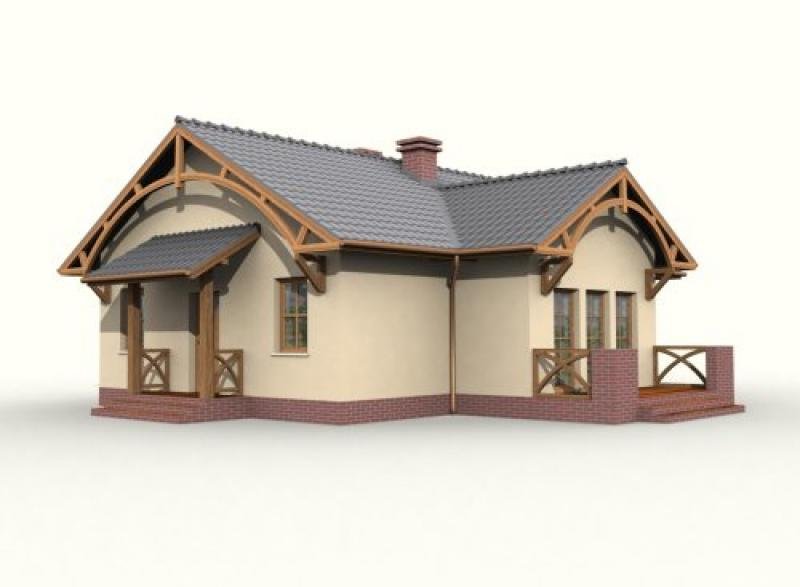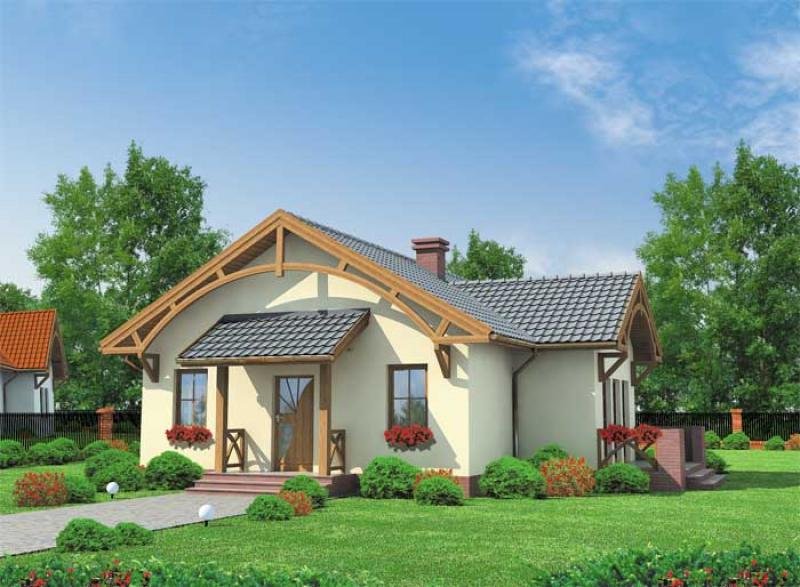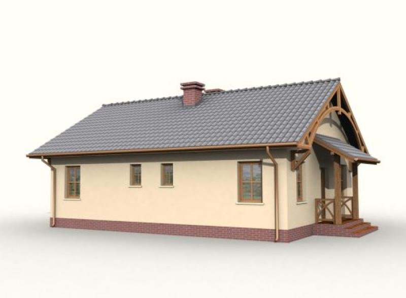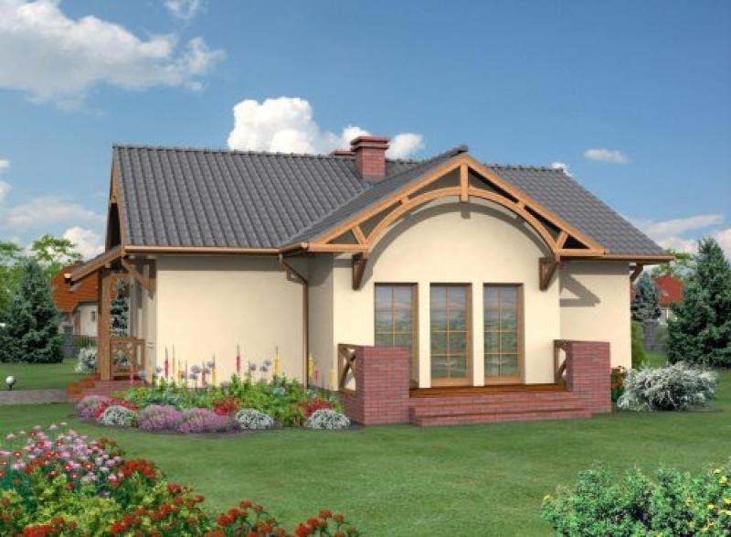 "Barletta" Ten uroczy, niepodpiwniczony domek, przyciąga uwagę pomysłowymi, drewnianymi łukami rozpiętymi między krawędziami spadzistego, nachylonego pod kątem 30 stopni, dachu. Ów dekoracyjny element został umieszczony zarówno od frontu, z tyłu, jak i z prawego boku domku. Zanim wejdziemy do środka głównym wejściem, zauważymy niewielki, ale bardzo funkcjonalny daszek, podtrzymywany dwoma ciekawymi filarami, których podstawy znalazły oparcie na szczycie kilku schodków, prowadzących nas do ciepłego wnętrza. Gdy zostawimy za sobą drzwi wejściowe, wejdziemy do wiatrołapu, po prawej stronie będziemy mieli dosyć sporych rozmiarów garderobę. To praktyczne rozwiązane, pozwoli nam nie martwić się o brak miejsca na buty czy liczne okrycia wierzchnie – szczególnie zimą. Idąc dalej mamy po naszej lewej stronie obszerną kuchnię, w której możemy wydzielić część jadalną. W projekcie przewidziano także miejsce na dwie łazienki – jedną, mniejszą, gdzie możemy zamontować natrysk, drugą – większą, w której znajdzie się miejsce na wannę. Między kuchnią a większą łazienką przewidziano miejsce na kotłownię. Oprócz tych pomieszczeń, mamy jeszcze trzy pokoje – w jednym z nich, położonym tuż za większą łazienką, możemy urządzić pokój dla dziecka lub dzieci, ponieważ ma on powierzchnię 12 m2. W sąsiednim pomieszczeniu możemy urządzić sypialnię lub kolejny pokój dla dziecka, jeżeli rodzice zdecydują się spać w pokoju dziennym – największym pomieszczeniu w całym domu, którego dodatkowym atutem jest możliwość wyjścia na niewielki taras oraz bliskie sąsiedztwo z łazienką i kuchnią, co okaże niezwykle praktycznym rozwiązaniem każdego dnia funkcjonowania w tym domu, jak i w momencie, gdy odwiedzą nas goście. Ten projekt będzie zapewne zadowalającym rozwiązaniem dla 3-4 osobowej rodziny, która szuka ekonomicznego, niedużego, ale i zarazem atrakcyjnego domku. Czy odpowiada Twoim potrzebom? Projekt składa się z części architektonicznej, konstrukcyjnej, wewnętrznych instalacji wod.-kan, c. o. i elektrycznej. W projekcie załączone są podstawowe zestawienie stali, drewna i stolarki okienno-drzwiowej. Do projektu dołączamy bezpłatną zgodę na wprowadzenie zmian, oświadczenie projektantów o wykonaniu projektu zgodnie z obowiązującymi normami i przepisami oraz kserokopie uprawnień projektantów wraz z aktualnym wpisem do izby. W przypadku zamówienia projektu w technologii lekkiej, drewnianej konstrukcji szkieletowej, powierzchnia użytkowa budynku jest o około 7% większa.