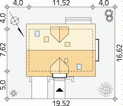 - Min. wymiary działki 19.52x16.62 m