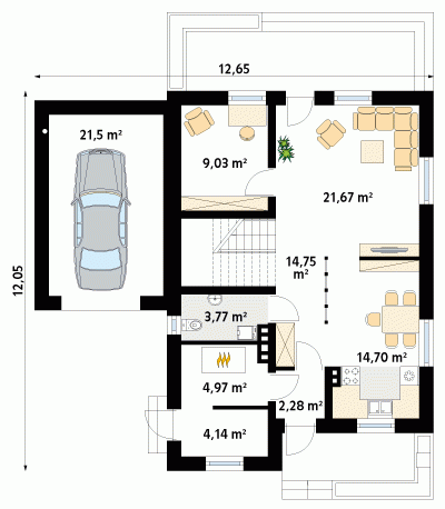 - Min. wymiary działki 20.65x21.05 m