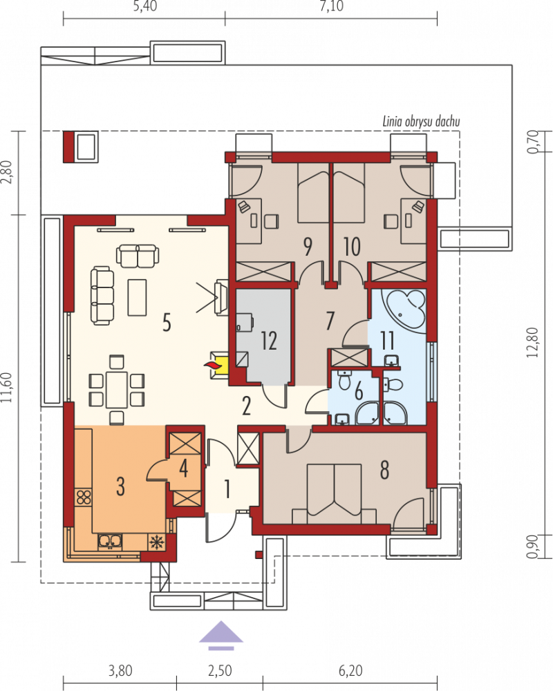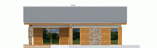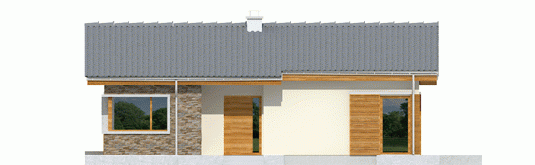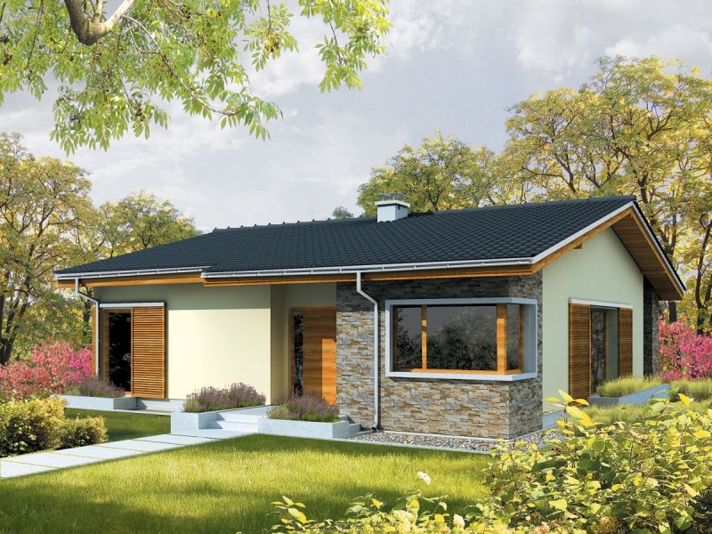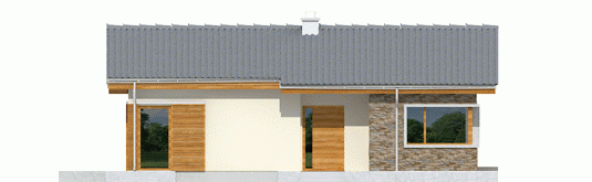 Dom parterowy, niepodpiwniczony. Przeznaczony dla 3-4-osobowej rodziny. Strefę dzienną tworzą kuchnia ze spiżarnią, jadalnia, przestronny pokój dzienny oraz toaleta. W strefie nocnej znajdują się trzy sypialnie i obszerna łazienka. Ponadto zaprojektowano duże pomieszczenie gospodarcze . Jasny podział funkcjonalny i wyraźne oddzielenie stref dziennej i nocnej wpływa na wygodę użytkowania. Bob jest przykładem harmonijnego połączenia tradycyjnej formy oraz nowoczesnych detali w wykończeniu elewacji. Jego prosta bryła z dwuspadowym dachem wpływają na niskie koszty budowy. Dzięki odpowiednio zaprojektowanym przeszkleniom dom ten zyskuje otwarty i słoneczny charakter. Istnieje możliwość podpiwniczenia budynku.
