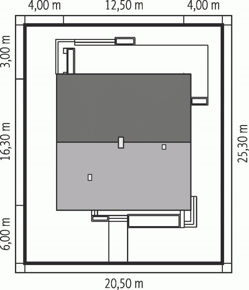 - Min. wymiary działki 20.50x25.30 m