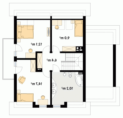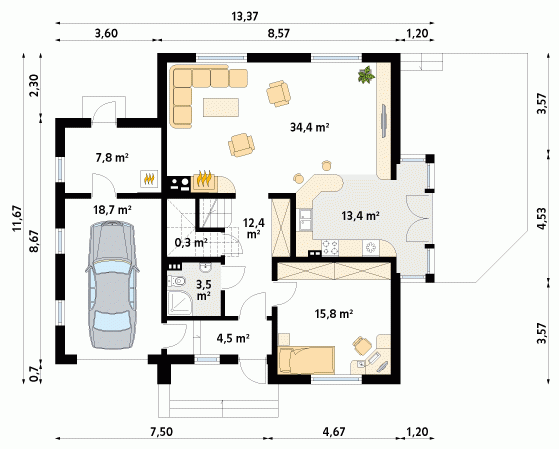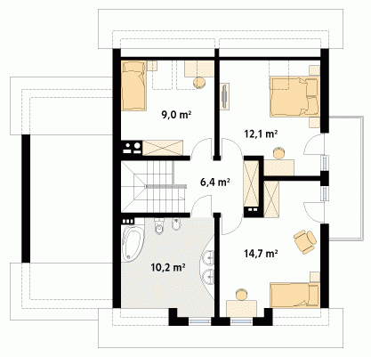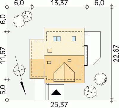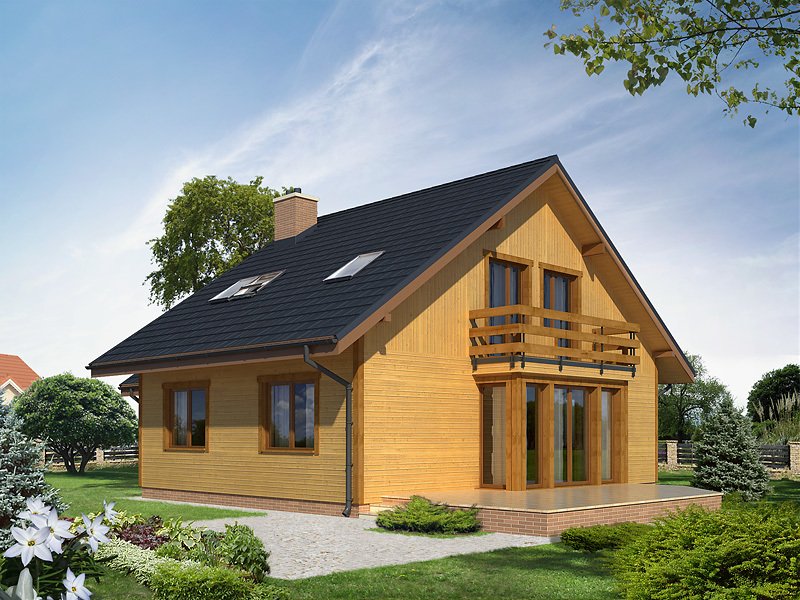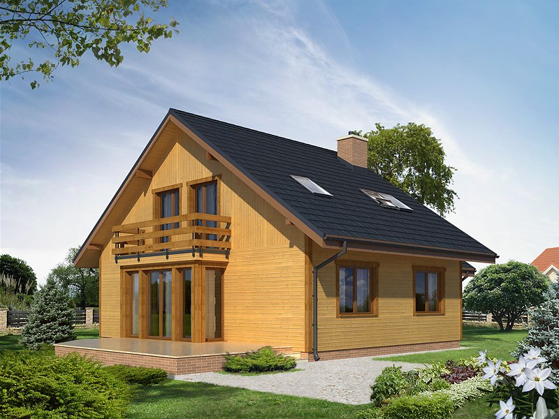 Budynek mieszkalny jednorodzinny w technologii drewnianej szkieletowej. Przeznaczony dla 4-5 osobowej rodziny. Na parterze oprócz części dziennej zaprojektowano dodatkowy pokój przeznaczony na gabinet lub sypialnię.