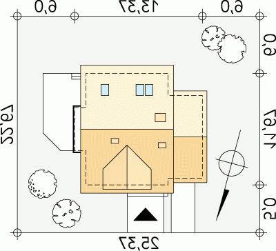 Ściany: szkielet drewniany, Stropy: na belkach drewnianych, Dach: dachówka gontopodobna GERARD CORONA, kąt nachylenia 35°