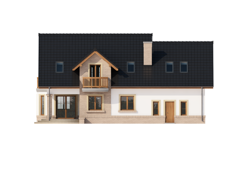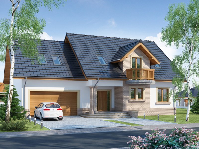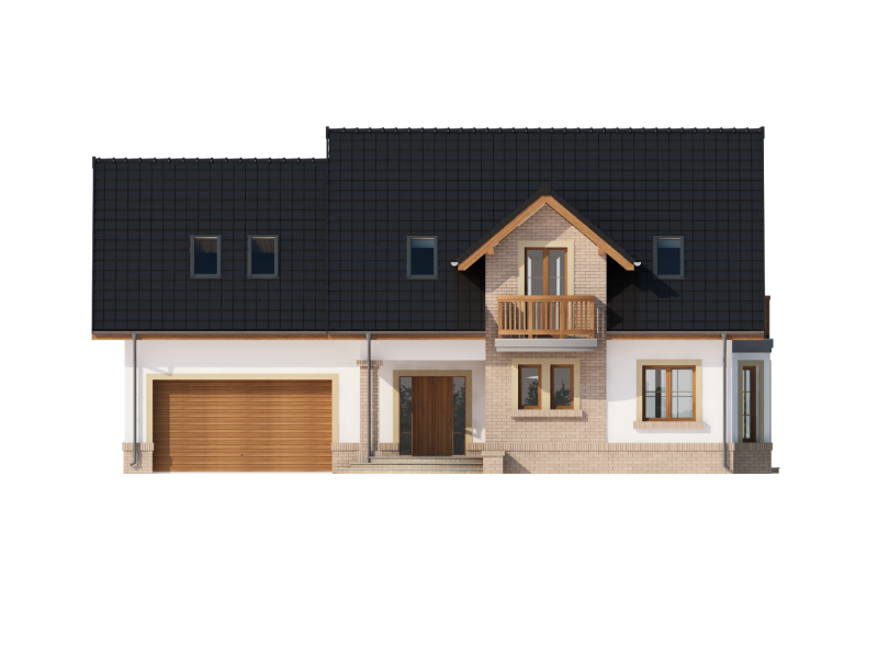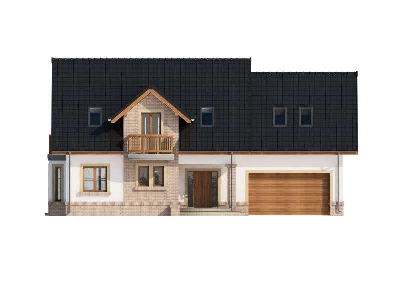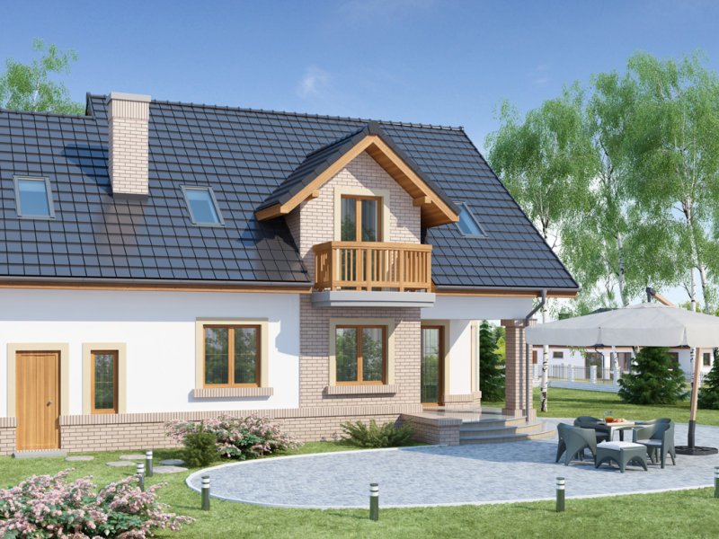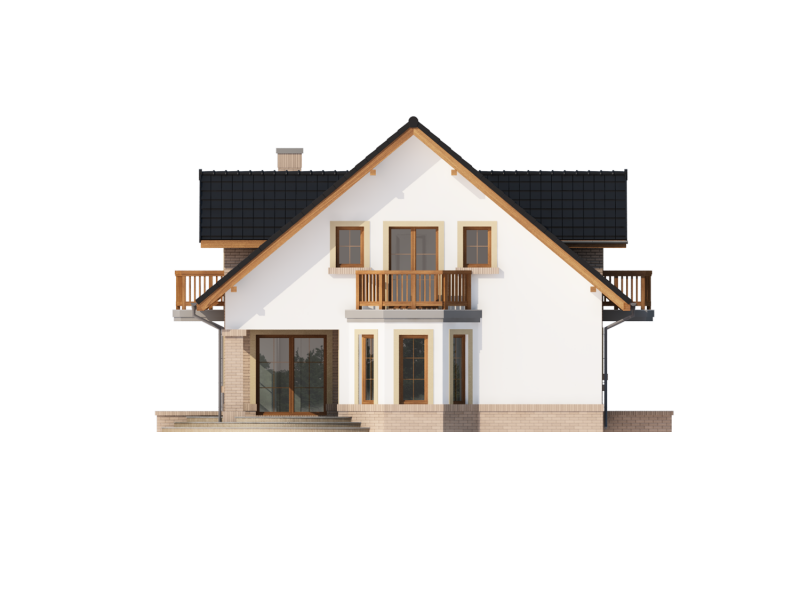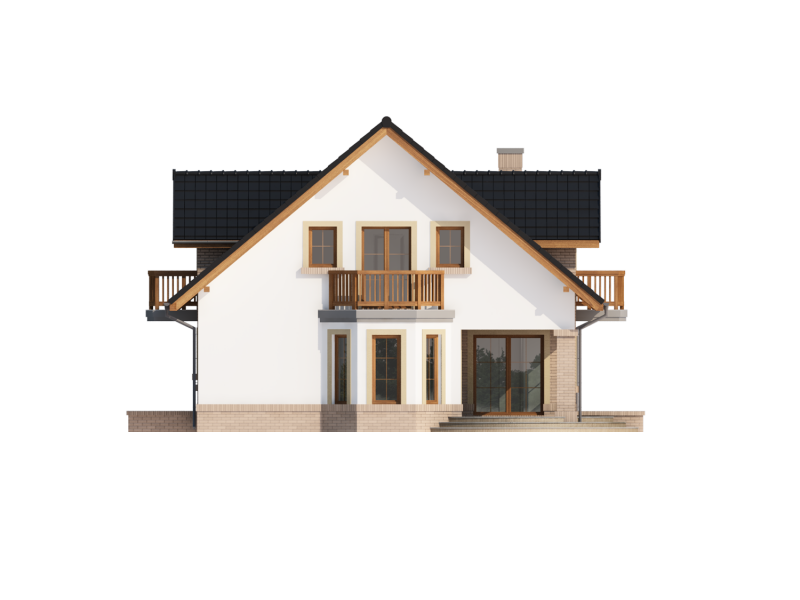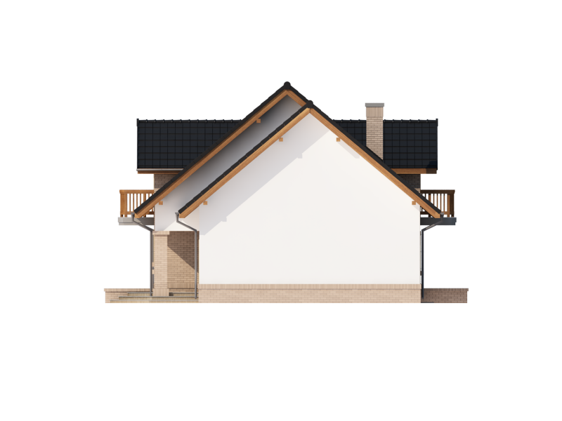 Bonita 2 to funkcjonalny dom o tradycyjnej bryle, przeznaczony dla 4-osobowej rodziny. Mijając zadaszone wejście, trafiamy do ustawnego wiatrołapu z miejscem na szafy pod zabudowę. Wiatrołap dzieli strefę dzienną domu ze strefą gospodarczą. W skład strefy dziennej wchodzi oświetlona wieloma przeszkleniami jadalnia umieszczona w wykuszu, salon z przytulnym kominkiem i widokiem na zadaszony taras, otwarta kuchnia z praktyczną spiżarnią oraz wc. Zwolennicy kuchni zamkniętych, dzięki zastosowaniu ścianki działowej, mają możliwość wydzielenia samej kuchni lub całej części kuchenno-jadalnianej. Według potrzeb domowników, istnieje możliwość przekształcenia wc w łazienkę kosztem spiżarni. Dostęp na taras przewidziano zarówno z salonu jak i strefy jadalni. Część gospodarcza domu to dwustanowiskowy garaż oraz pomieszczenie gospodarcze/kotłownia wyposażone w dodatkowe wyjście na ogród. Na poddaszu znajduje się strefa nocna domu, która składa się z trzech sypialni, ogólnodostępnej łazienki oraz strychu. Dwa pokoje zaprojektowano z odrębną garderobą, dodatkowo jedna z sypialni posiada indywidualną łazienkę. Strych dostępny z półpiętra można w ramach adaptacji przeznaczyć na dodatkowy pokój hobby, gabinet itp.