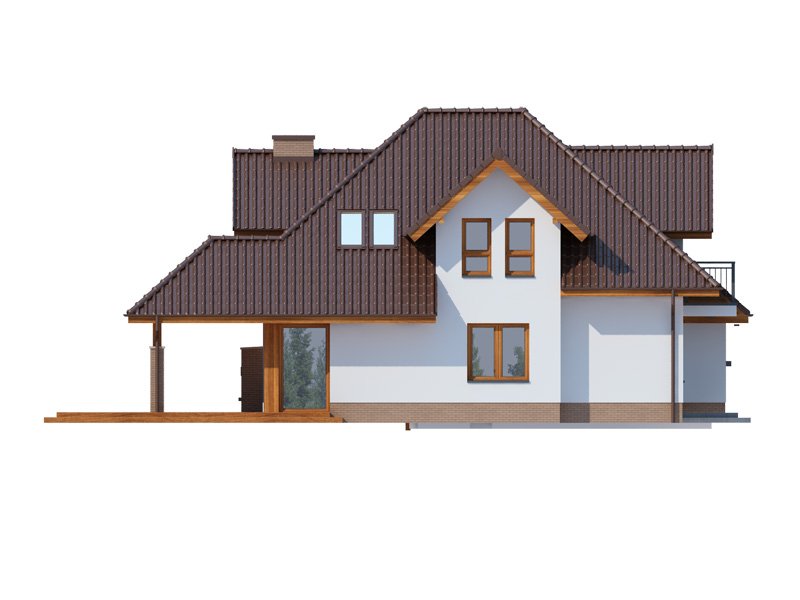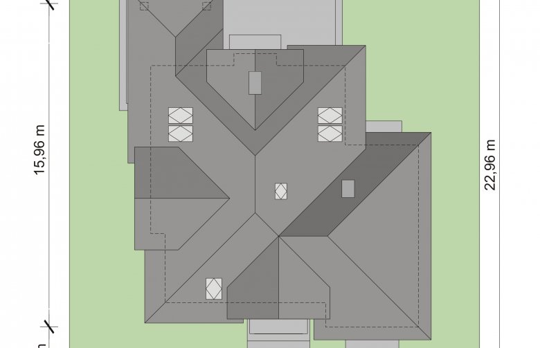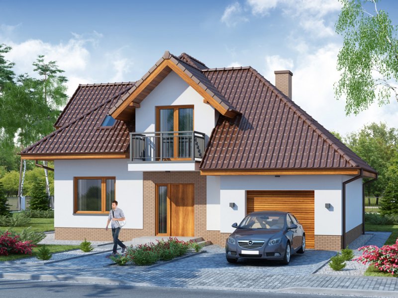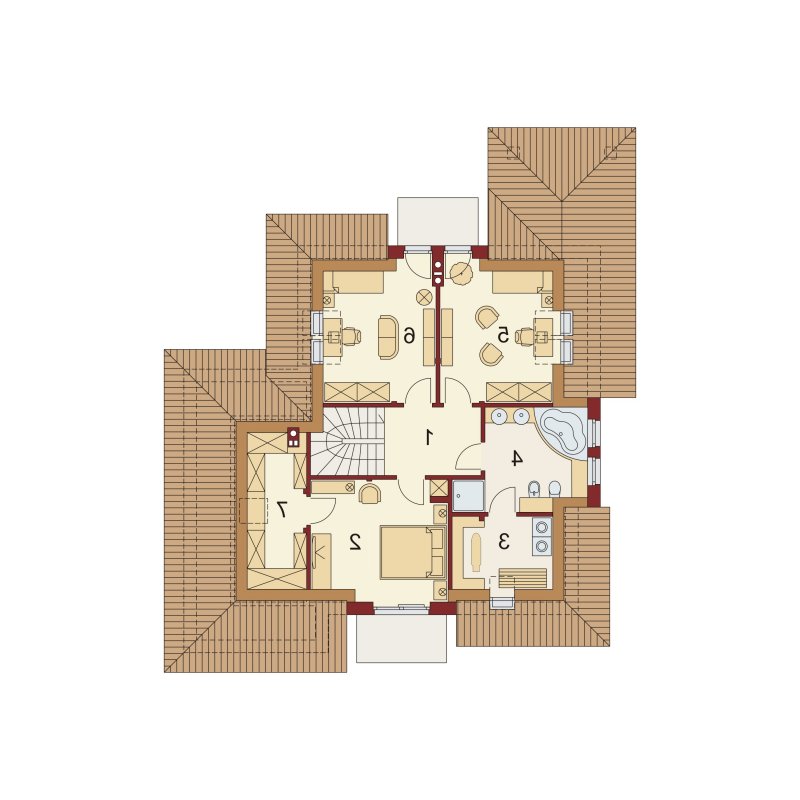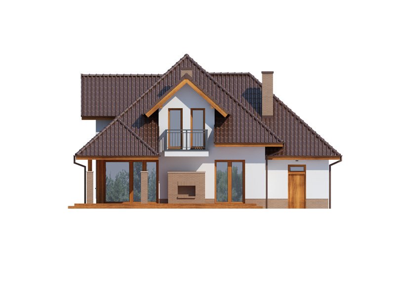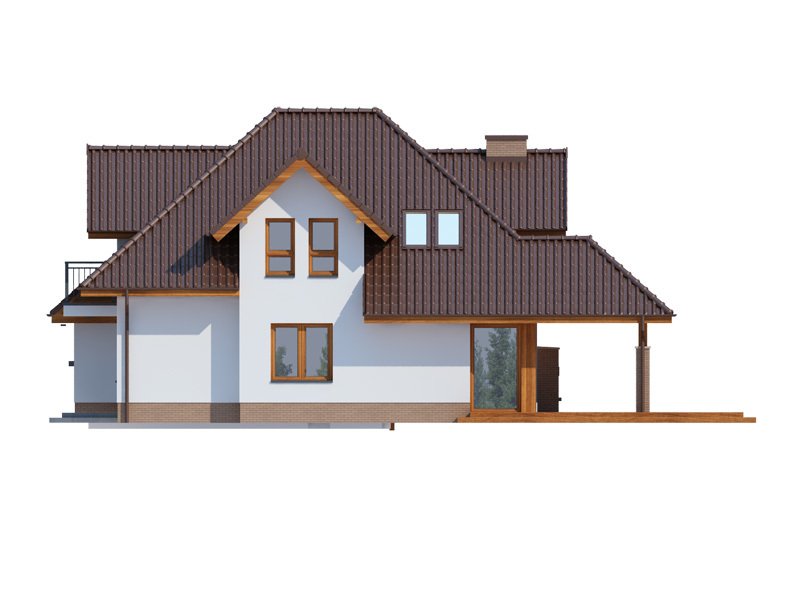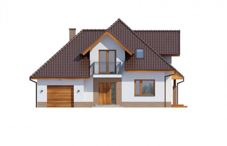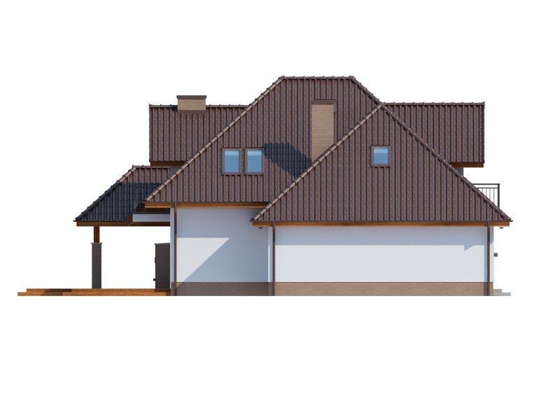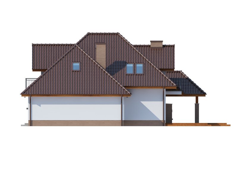 CELINA to dom parterowy z poddaszem użytkowym, zaprojektowany dla 4-5-osobowej rodziny. Wiatrołap z miejscem na szafę wiedzie do przestronnego salonu połączonego z jadalnią. Przylegającą kuchnię, częściowo wydzieloną ścianą działową, można całkowicie zamknąć lub otworzyć na resztę strefy dziennej. Na parterze zlokalizowano też obszerny gabinet, mogący pełnić funkcję pokoju gościnnego lub kolejnej sypialni, oraz łazienkę. Poprzez wiatrołap dostępny jest również garaż i usytuowane za nim pomieszczenie gospodarcze z praktycznym wyjściem do ogrodu. Na poddaszu znajdują się trzy duże sypialnie i salon łazienkowy wraz z z dostępną z niego sporą pralnią, oraz garderoba dostępna z głównej sypialni.