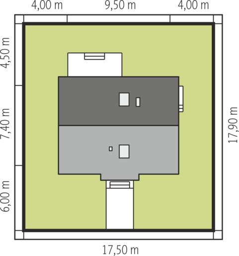 - Min. wymiary działki 17.60x15.50 m