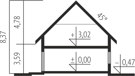 - Kąt nachylenia dachu 45.00°