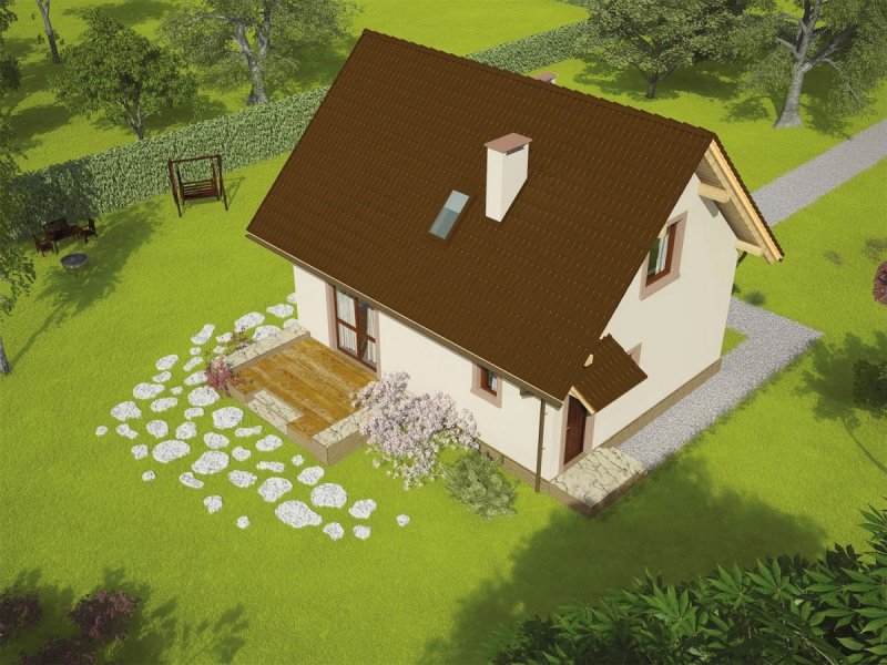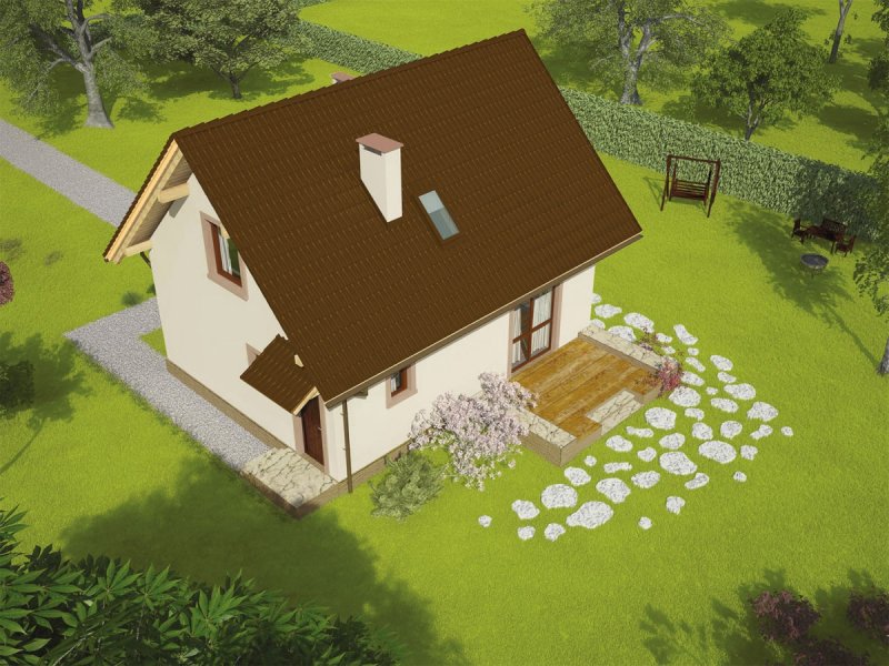 Celinka Mocca to dom pełen przytulnego ciepła – tani w realizacji i późniejszej eksploatacji – doskonały na małą działkę. W jego wnętrzu zaplanowano czytelny podział funkcjonalny – na parterze mieści się rodzinna strefa dzienna, na poddaszu – zaciszny azyl nocny. Do dyspozycji domowników jest również kameralny taras.