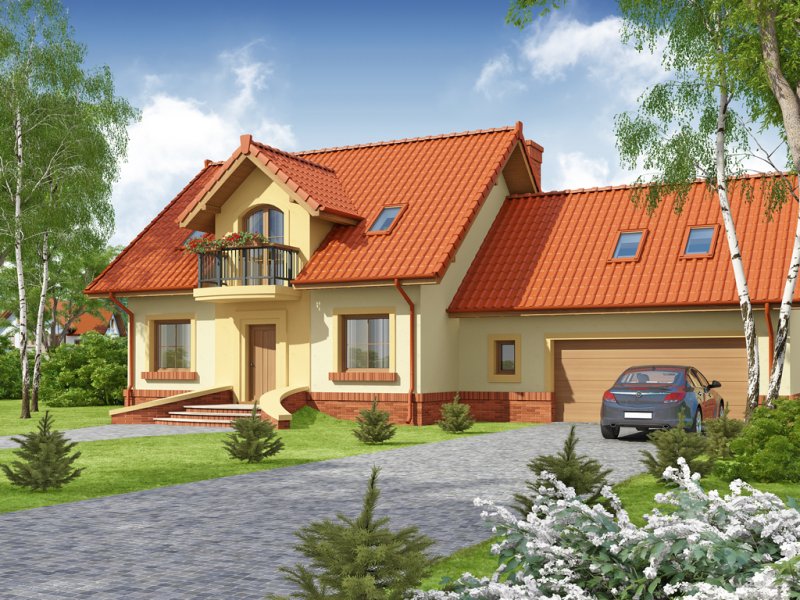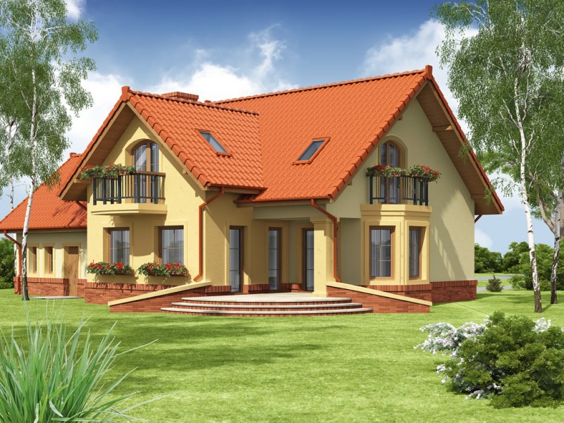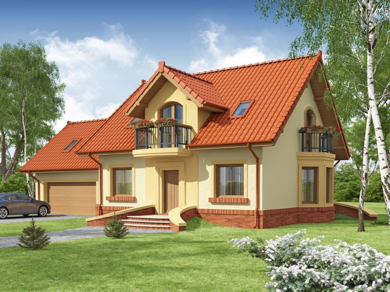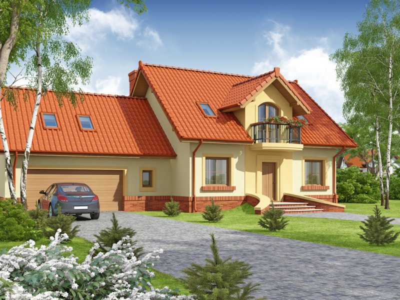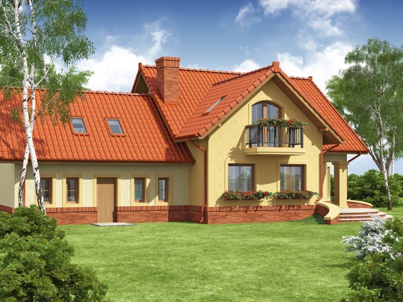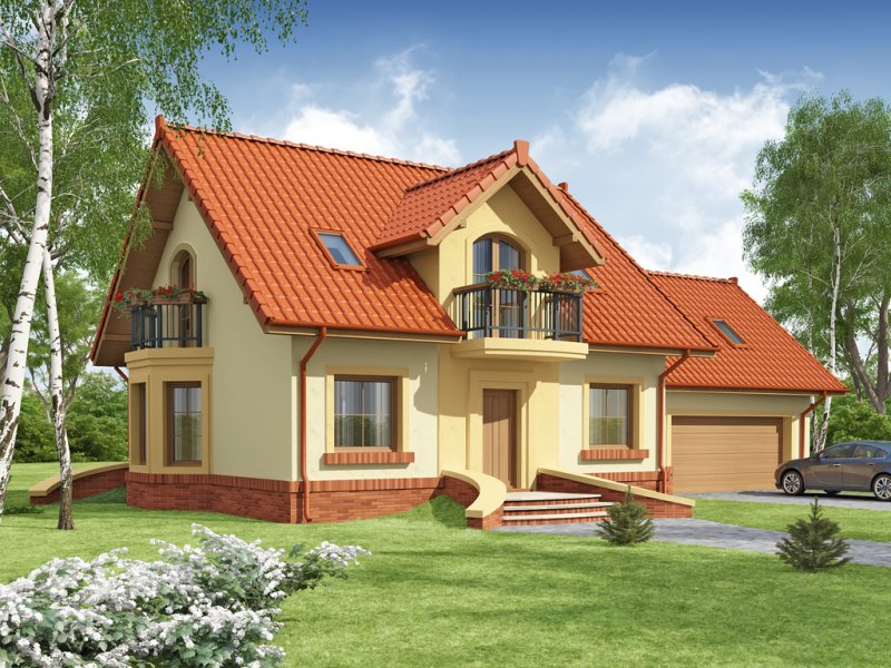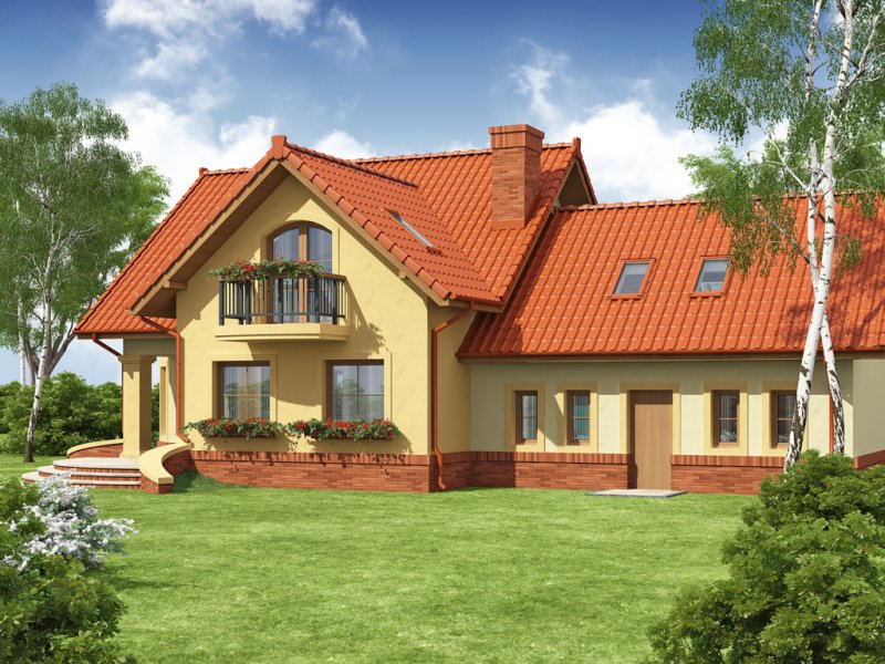 Tradycyjny dom jednorodzinny z poddaszem. Główną zaletą oraz cechą domu jest jego nasłonecznienie, dzięki temu jest to dom jasny i optymistyczny. Przestrzeń jaką posiada jadalnia, zlokalizowana w wykuszu, z powodzeniem pomieści dodatkowy stół. Jest to nie lada zaleta i okazja do wspólnego biesiadowania z przyjaciółmi i rodziną. Ciekawym pomysłem są dwa wyjścia z salonu na taras, z pewnością zostaną one wykorzystane w pogodne letnie wieczory. Łazienka, pomieszczenie gospodarcze oraz garaż to osobna część parteru. Jest to bardzo wygodne dla domowników – dzieli dom na poszczególne strefy: mieszkalną, intymną łazienkę oraz gospodarczą. Poddasze, z trzema sypialniami oraz łazienką, stanowi strefę nocną domku. Usytuowanie oraz rozmiar strychu sprzyja jego adaptacji na dodatkowe pomieszczenia podnoszące komfort i wygodę.