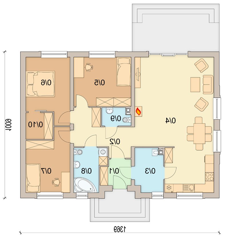 W domu przewidziano również pomieszczenie gospodarcze, oraz duży strych. W projekcie zastosowano wyłącznie typowe i sprawdzone rozwiązania, co znacznie ułatwi budowę i zminimalizuje koszty eksploatacji.