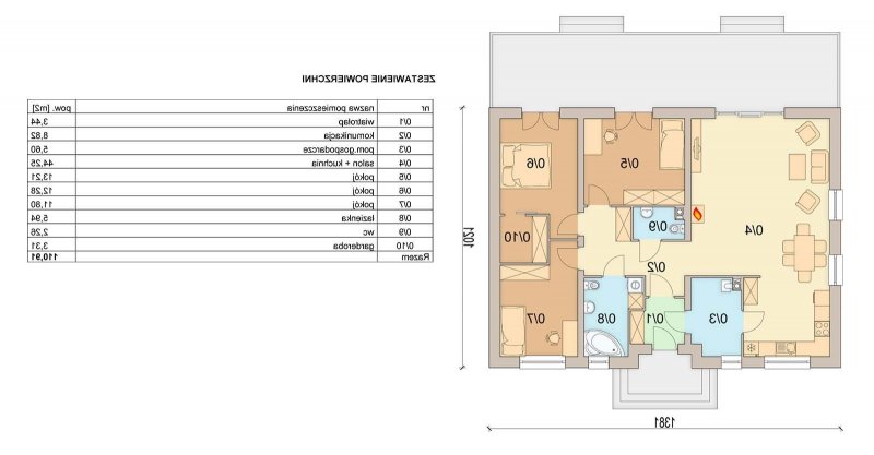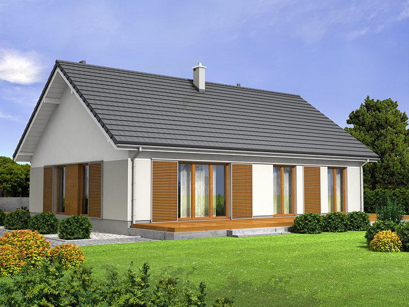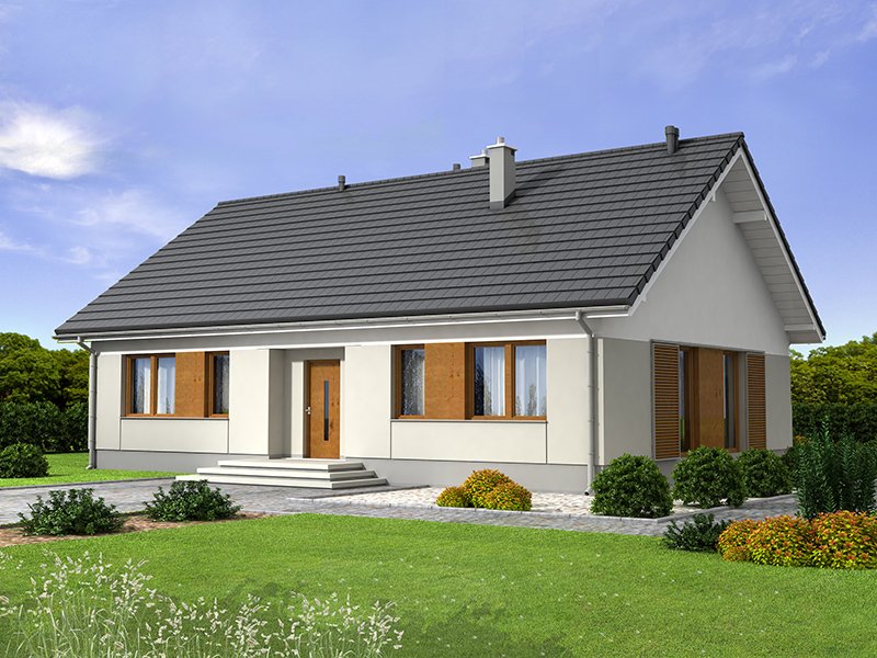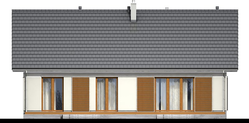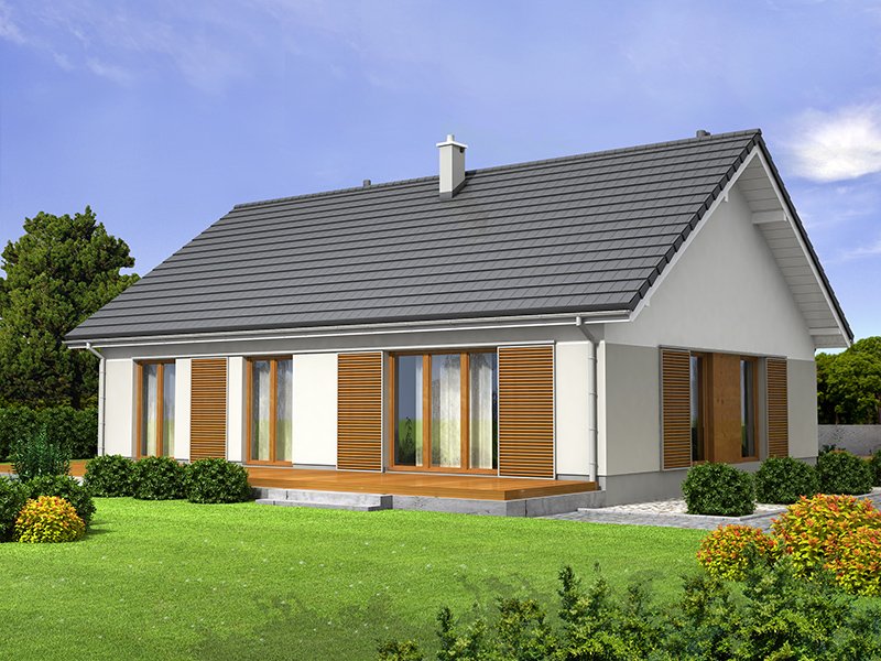 Daktyl 2 modern to niewielki dom parterowy, przeznaczony dla 4-5 osobowej rodziny. Mimo niewielkich rozmiarów , dzięki dobrze zagospodarowanej przestrzeni, będzie bardzo wygodny w użytkowaniu. Niewątpliwym atutem projektu jest jasny podział na strefę ogólnodostępną i prywatną - przeznaczoną tylko dla mieszkańców. W tej drugiej zlokalizowano trzy sypialnie, dużą łazienkę, oraz garderobę. W domu przewidziano również pomieszczenie gospodarcze, oraz duży strych.