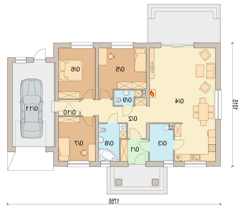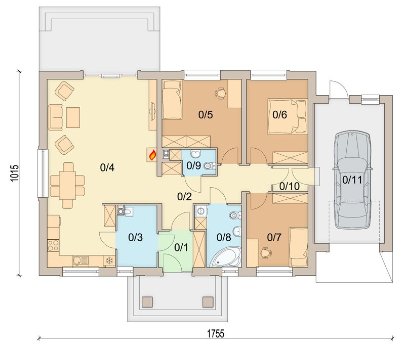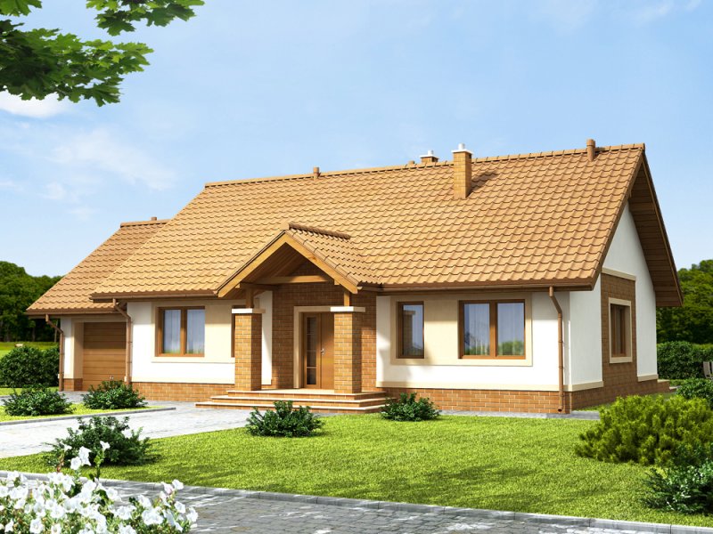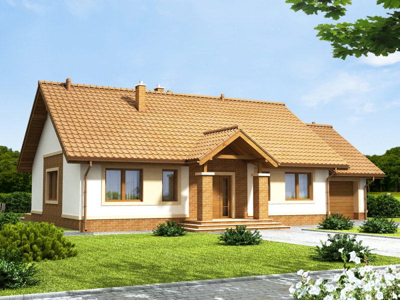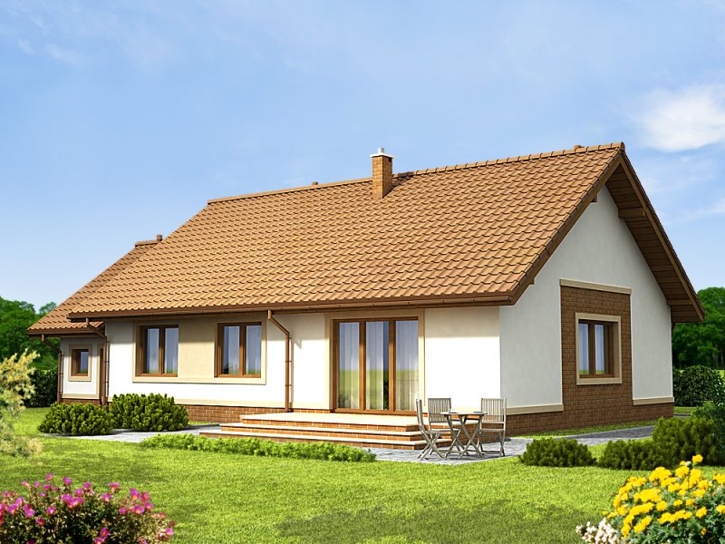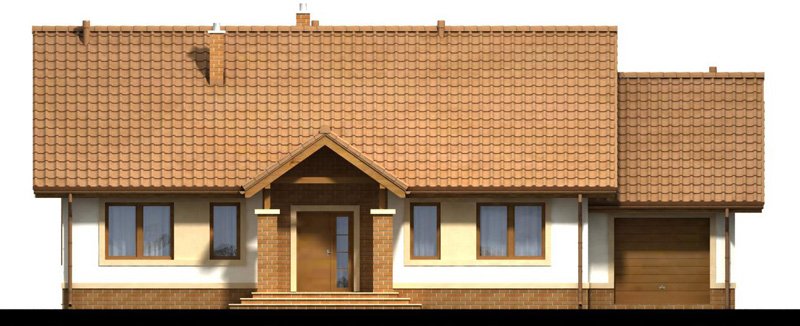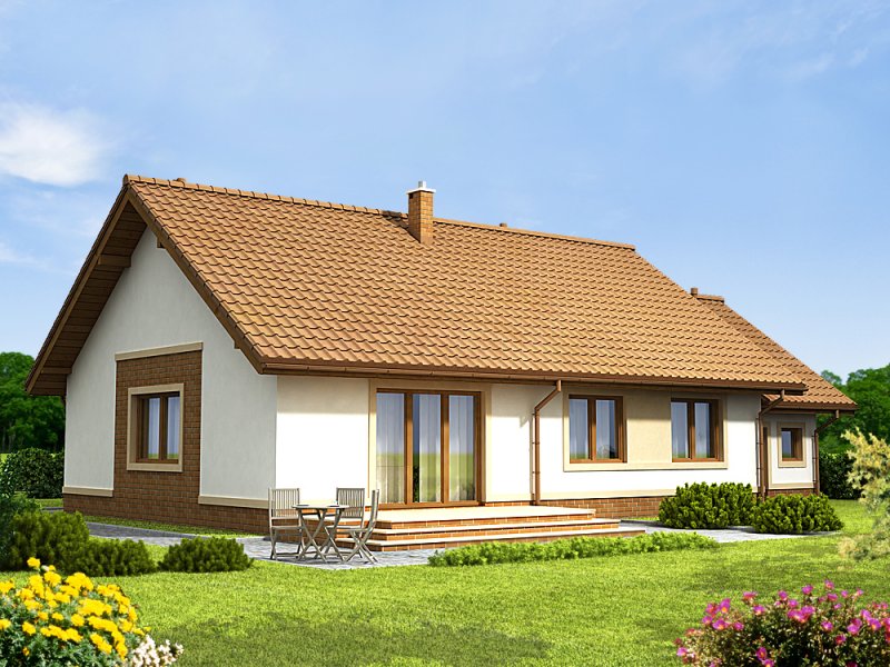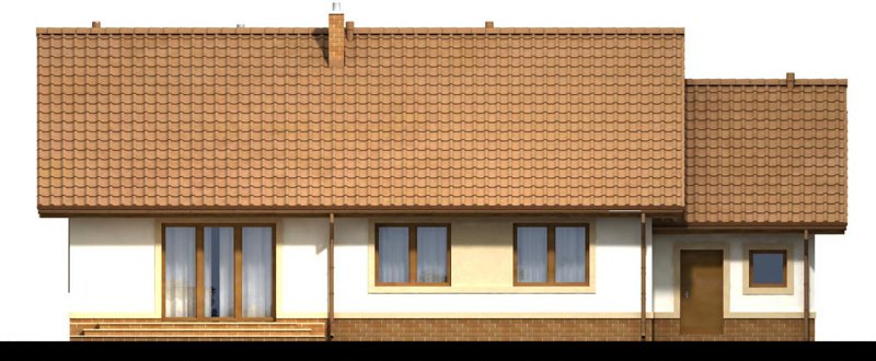 Daktyl 3 to niewielki dom parterowy, przeznaczony dla 4-5 osobowej rodziny. Mimo niewielkich rozmiarów , dzięki dobrze zagospodarowanej przestrzeni, będzie bardzo wygodny w użytkowaniu. Projekt posiada duży zadaszony ganek, oraz wiatrołap z miejscem na szafę. Niewątpliwym atutem projektu jest jasny podział na strefę ogólnodostępną i prywatną - przeznaczoną tylko dla mieszkańców. W tej drugiej zlokalizowano trzy sypialnie, oraz łazienkę z miejscem na pralkę i szafę w zabudowie. W projekcie przewidziano duży garaż z dodatkowym miejscem, np. na narzędzia ogrodnicze i stół warsztatowy. Co ważne zaprojektowano bezpośrednie przejście z garażu do domu. Przewidziano również pomieszczenie gospodarcze, oraz duży strych. W projekcie zastosowano wyłącznie typowe i sprawdzone rozwiązania, co znacznie ułatwi budowę i zminimalizuje koszty eksploatacji.