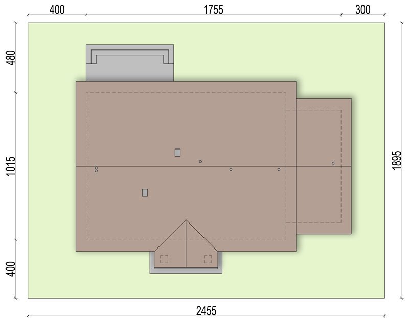 - Min. wymiary działki 24.55x18.95 m